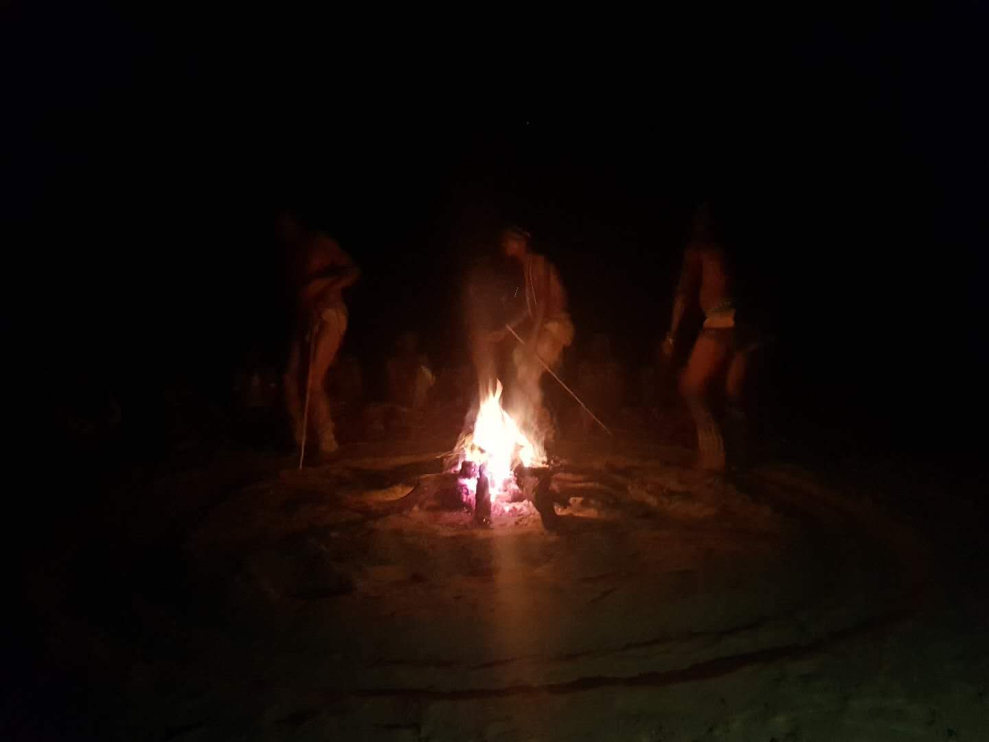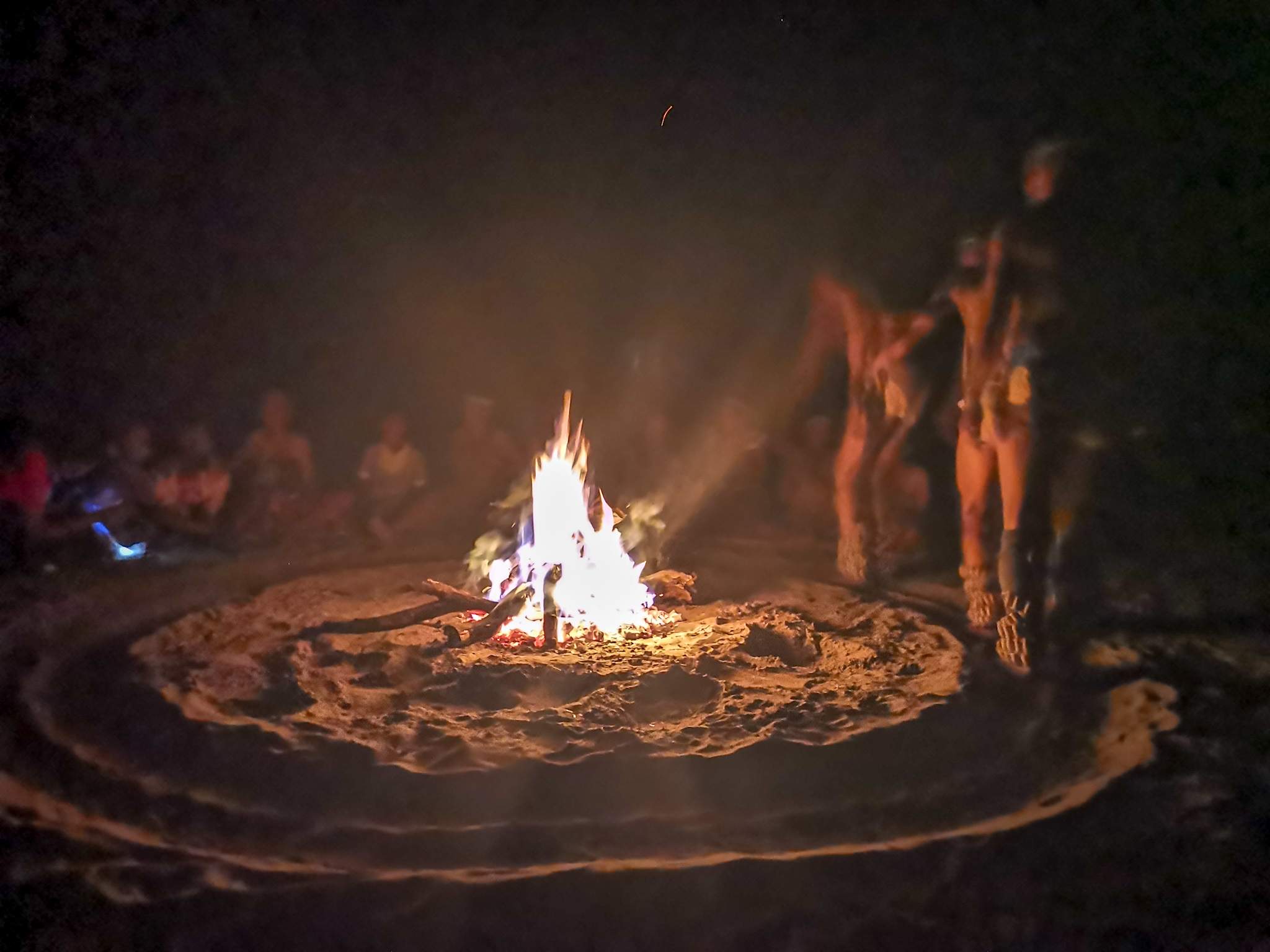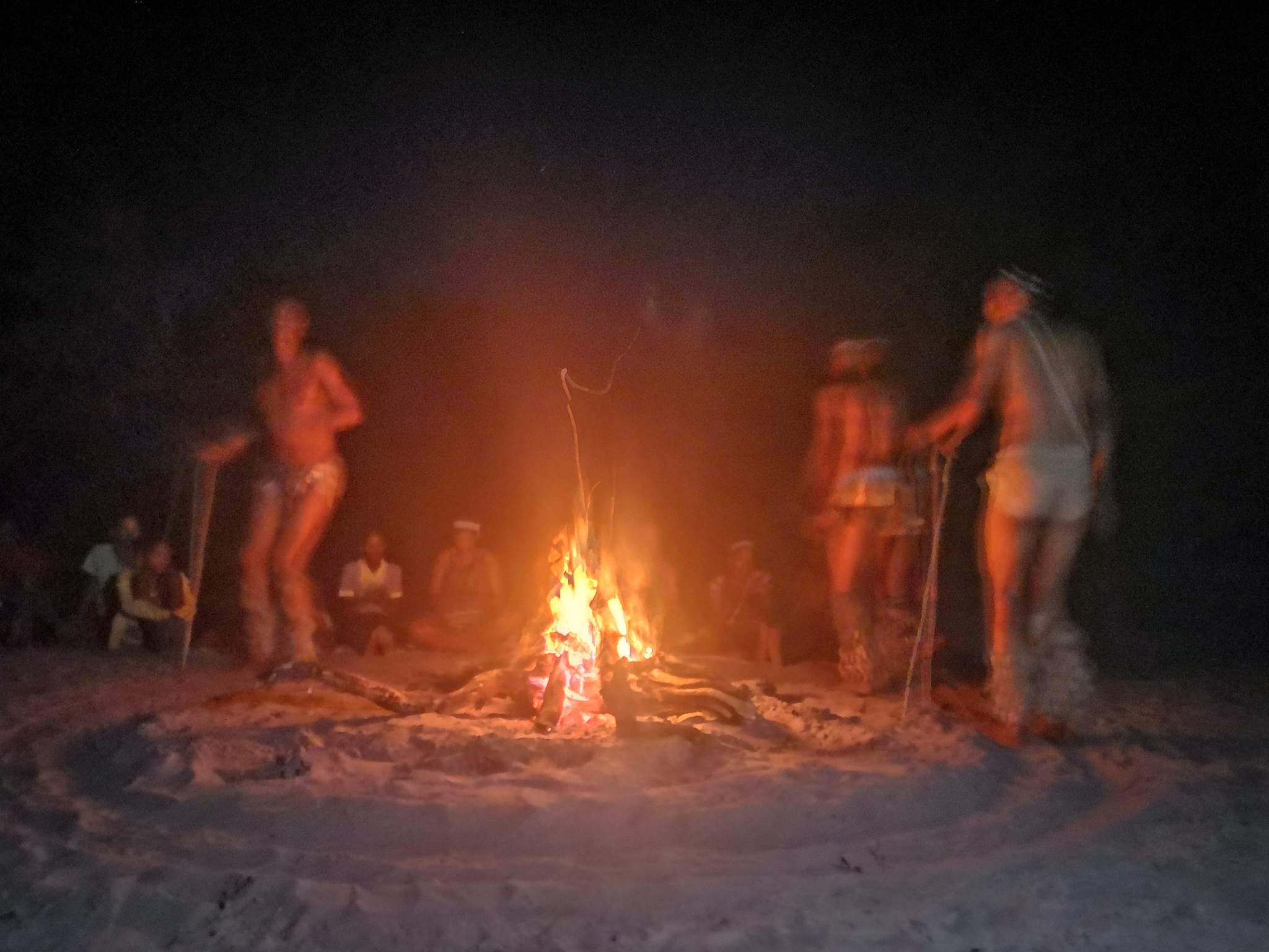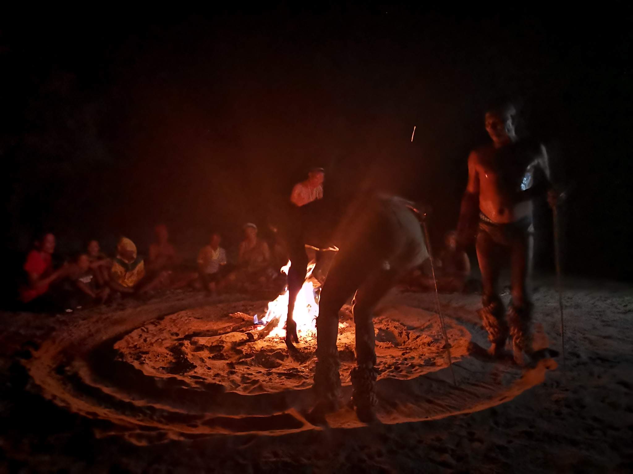 Now let me set the scene. The fire was in full effect, the ladies were lined up behind the fire all chanting while 3 men danced, stomping their feet to the beat on the sand as they circled the fire slowly getting into a "trance" .