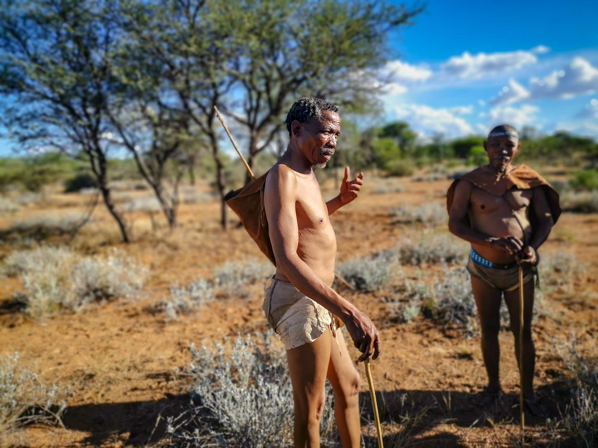 A quick demonstration of how they hunt with their bows was really cool. They go out in pairs or by themselves. Always checking which way the wind was blowing by dropping sand to the ground so the animal wouldn't pick up their scent then they can get close in for the kill.