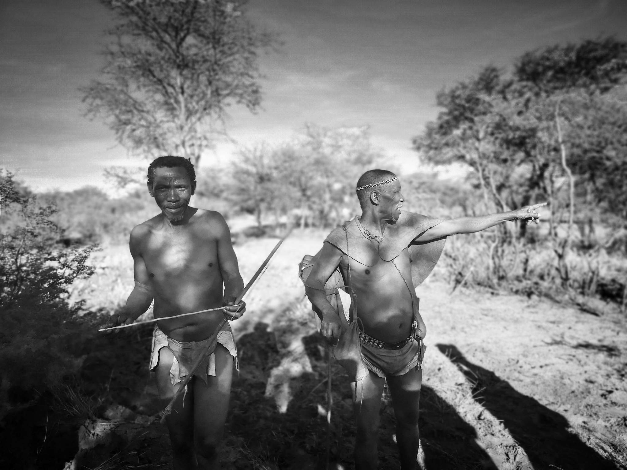 One of the bushmen re-enacted how he would hunt the giraffe. That sure is a lot of meat for the village in one of those beasts.