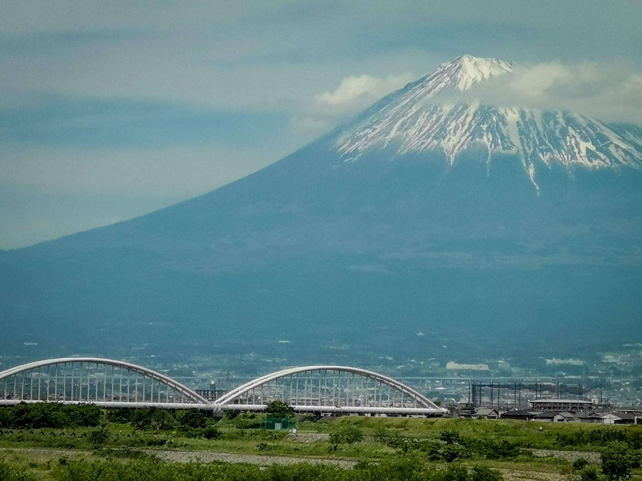 Traveling on the shinkansan (bullet train) from Tokyo to Osaka we passed Mt Fuji, I was lucky enough to snap this shot of Mt Fuji with out any clouds surrounding the top of the mountain.