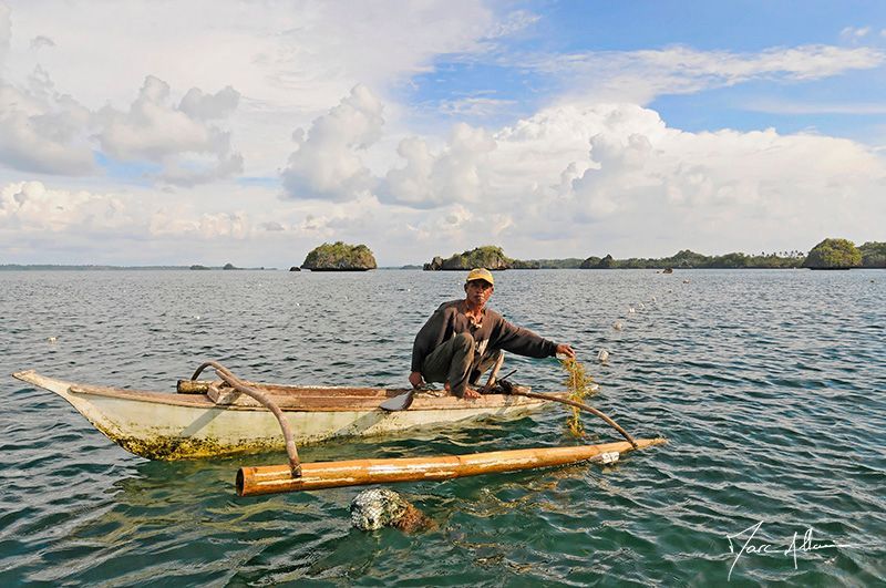 The interior of this ancient 19th century pirate landmark is not accessible by every ship. The shoals and the tortuous passage make access difficult. But the reward is beautiful for those who manage to lead their boat in the heart of the atoll. Several rocky fungi remind me of the morphology of Upi Bay in New Caledonia. The coasts are made aggressive and wild by rocks as if cut with knives, between which is hidden the sweetness of many idyllic beaches. The west of the atoll is without a doubt the most spectacular. A small labyrinth is drawn between several islets, the water is perfectly smooth and the beaches are sumptuous. It is here that Rodolpo cultivates seaweed. The cultivation of this seaweed is widespread in this part of Asia. Some cuttings tied around ropes and left about 6 weeks immersed will soon give big bouquets. These algae will then be dried before being shipped in the monthly cargo ship that will deliver it to Chinese mouths, but also to professionals in the pharmaceutical and food industries. The "pasty" aspect of your toothpastes, the creaminess of your yogurts, is the seaweed! In villages, English is hardly spoken, but the welcome is warm. A group of children is escorting me for a visit through the sand streets of the hamlet, a carpenter explains his technique in front of the frame of his next realization, the fishermen return, expected by their children, daily life is simple and seems happy.PATIENCE AND HOPE ...