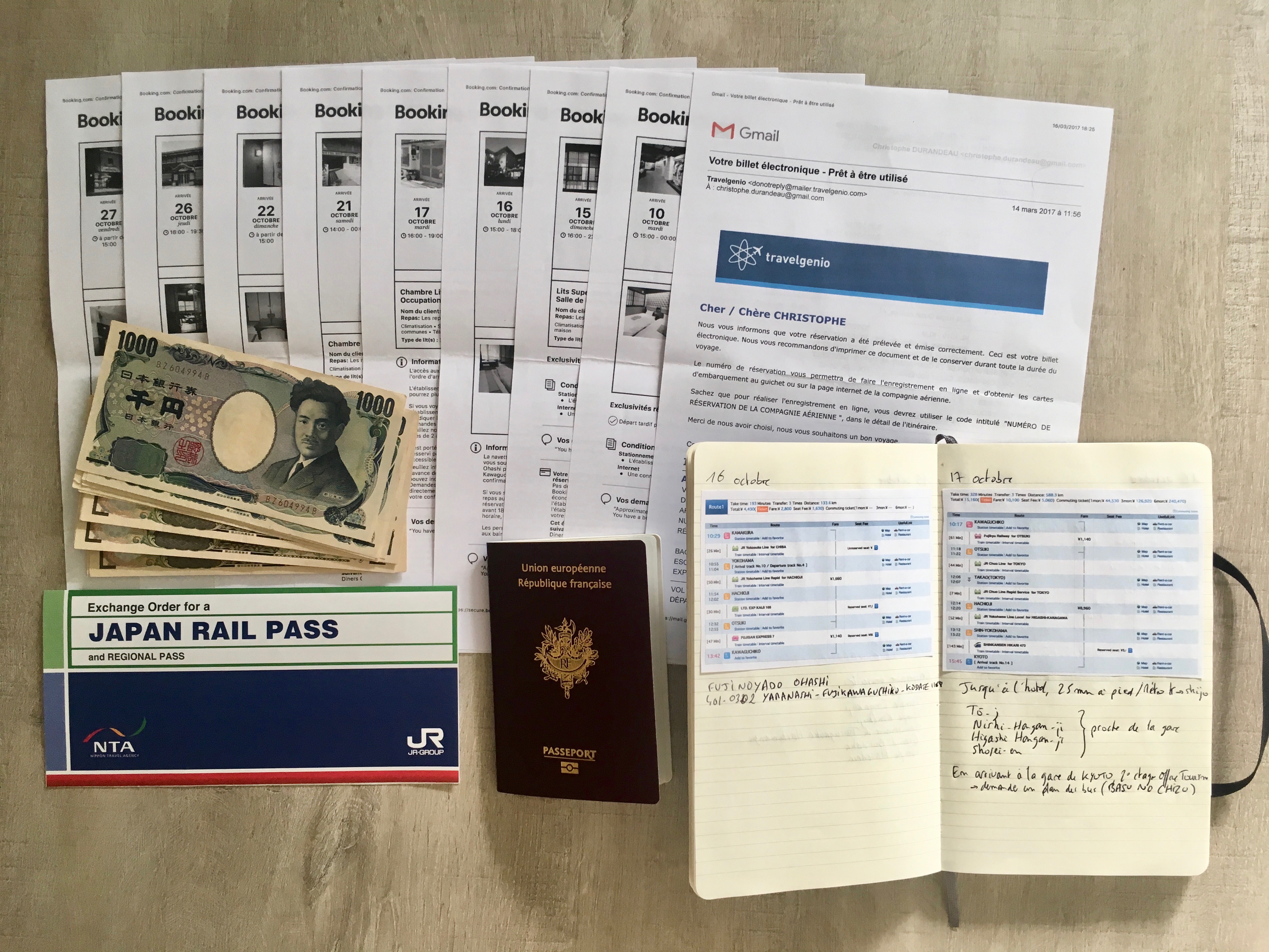 October 9, 2017, here I was on the plane to Tokyo. A 3 weeks stay with a tour between Tokyo, [Kamakura(https://en.wikipedia.org/wiki/Kamakura), Mount Fuji, Kyoto, Osaka, Takayama then return to Tokyo. I had made my hotel reservations in advance in order not to waste time when I am there.
