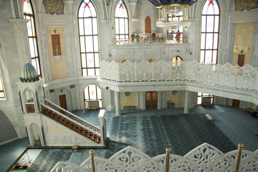 Tourists are allowed to go inside the Kul Sharif Mosque. You only need to tie a scarf on his head, and wear long aprons that cover his bare feet. For tourists there is a separate side staircase, which you can climb and do not interfere with the faithful to pray.