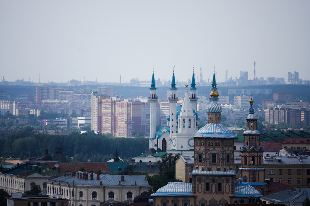 Kazan is located between two rivers - Volga and Kazanka. Here from the Kremlin you can see the Volga on the horizon.