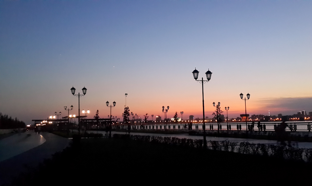 And this is the embankment of the Kazanka river. We went there in the evening. On the other side of the new districts of Kazan, there is a aqua park.