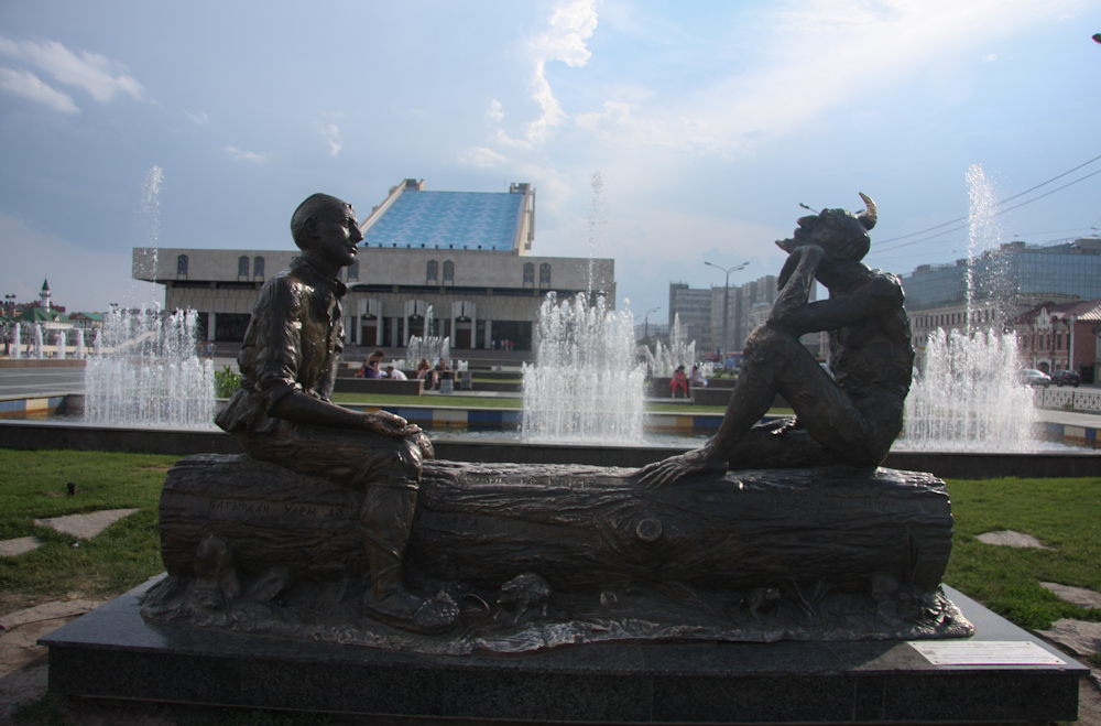 On this square there is one of the most interesting sculptures of fairy - tale characters-Şüräle and Batyr. It is the characters from tales of national Tatar writer Ğabdulla Tuqay.