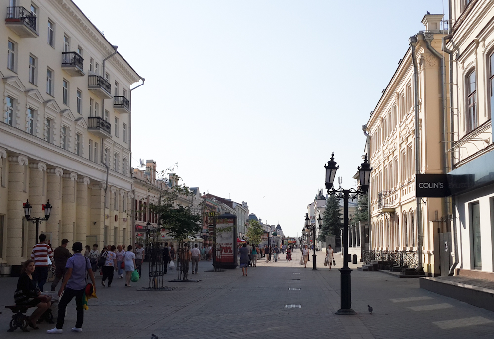 Here you can see the main pedestrian street of Kazan-Bauman street, which leads to the Kremlin. Most tourists gather here.