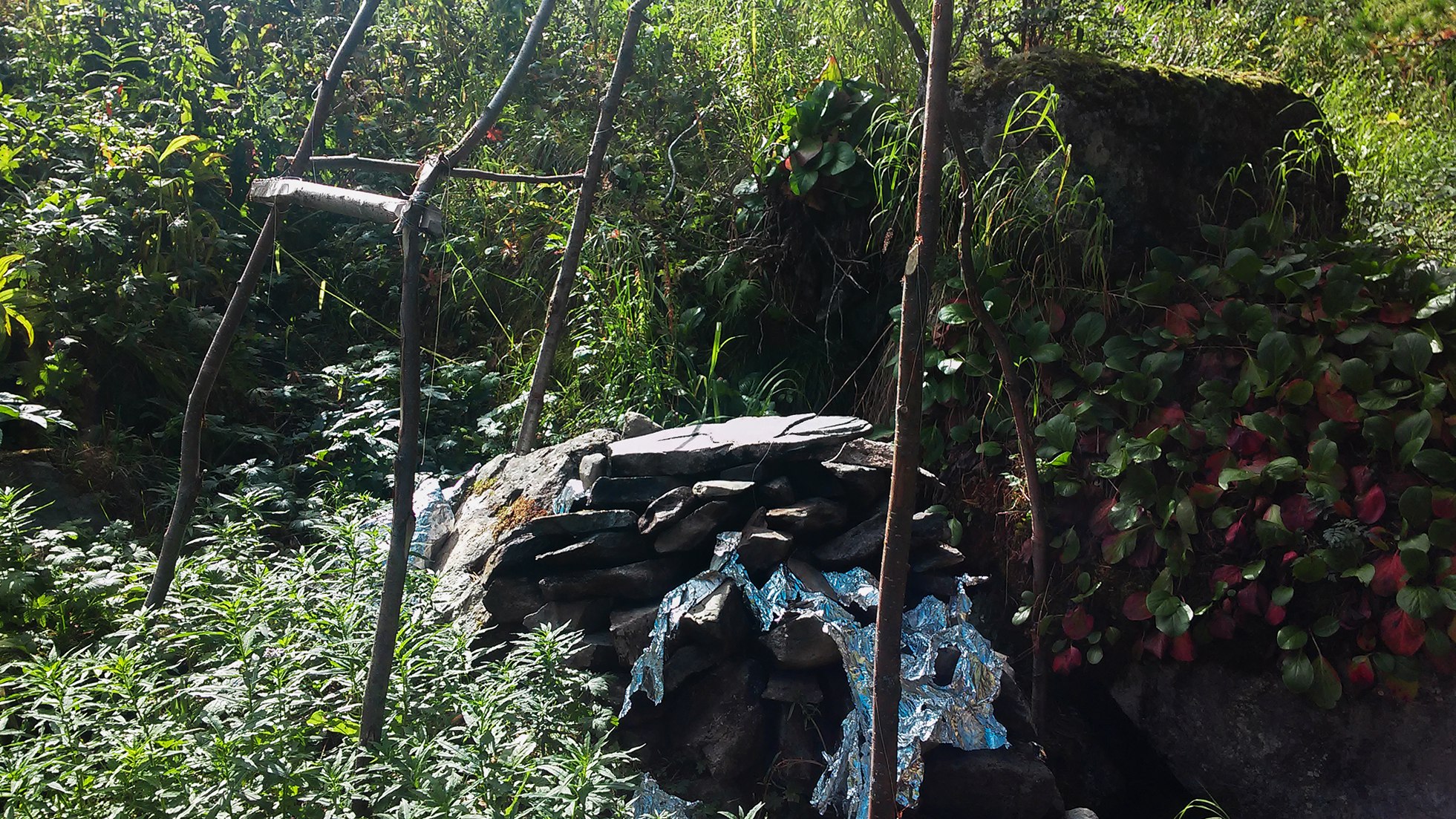 Here such an improvised bathhouse met along the way, made by tourists staying for the night in tents.