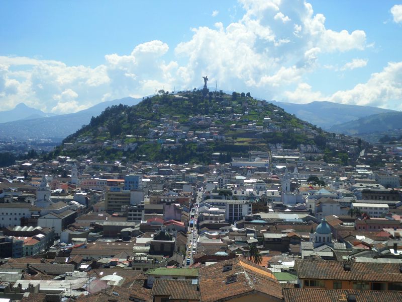 The view from the balcony is facing south towards the enormous hilltop statue of the Angel of the Apocalypse. The entire city, country, and basically all of Latin America is Catholic. So to see these religious monuments and structures geographically and geometrically laid out across the city is no surprise but is still very impressive.