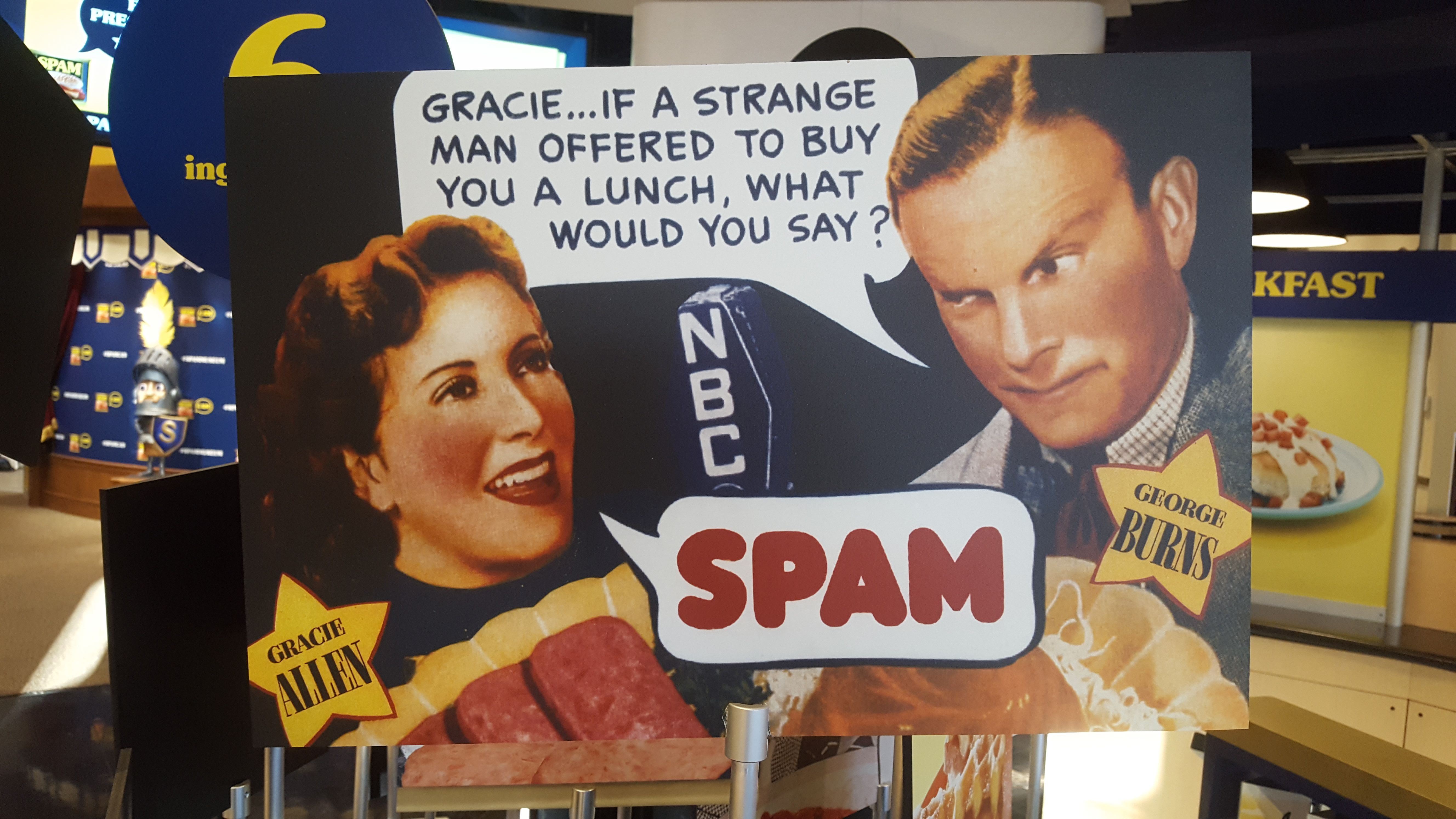 - The SPAM® Shop, where you can get just about anything imaginable with a SPAM® logo on it, as well as the only place in the continent where you can find ALL FIFTEEN VARIETES of SPAM®!!
