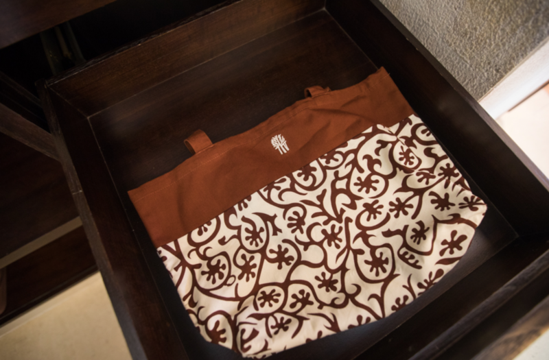 Inside the cabinet, brand-specific gowns and indoor slippers,