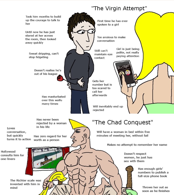 I think a lot of guys these days are too focused on looks. We read shit like r/TRP on Reddit, talk about "Chad" and how things like height and physical appearance are so important, how women are biologically programmed to be promiscuous during ovulation and it totally fucks with our heads. We start to think that we need to be the most jacked alpha male anywhere we go or we're literally worthless.