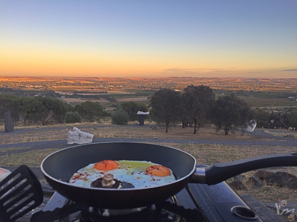 Slightly tipsy after all that wine, we decided to search for a place to sleep. On wiki camps we found a spot where we were allowed to park the car and sleep there (on a parking lot in Agaston). There weren’t any facilities but luckily the tourist centre in Tanunda had public showers where you can take a shower for $1 per 3 minutes. The next morning we drove to the look out point for breakfast.