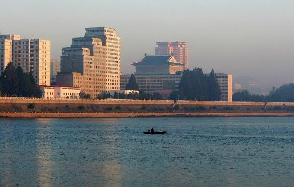 大同江畔的风景,高楼大厦并不少,江面波澜起伏,江水倒也清澈。