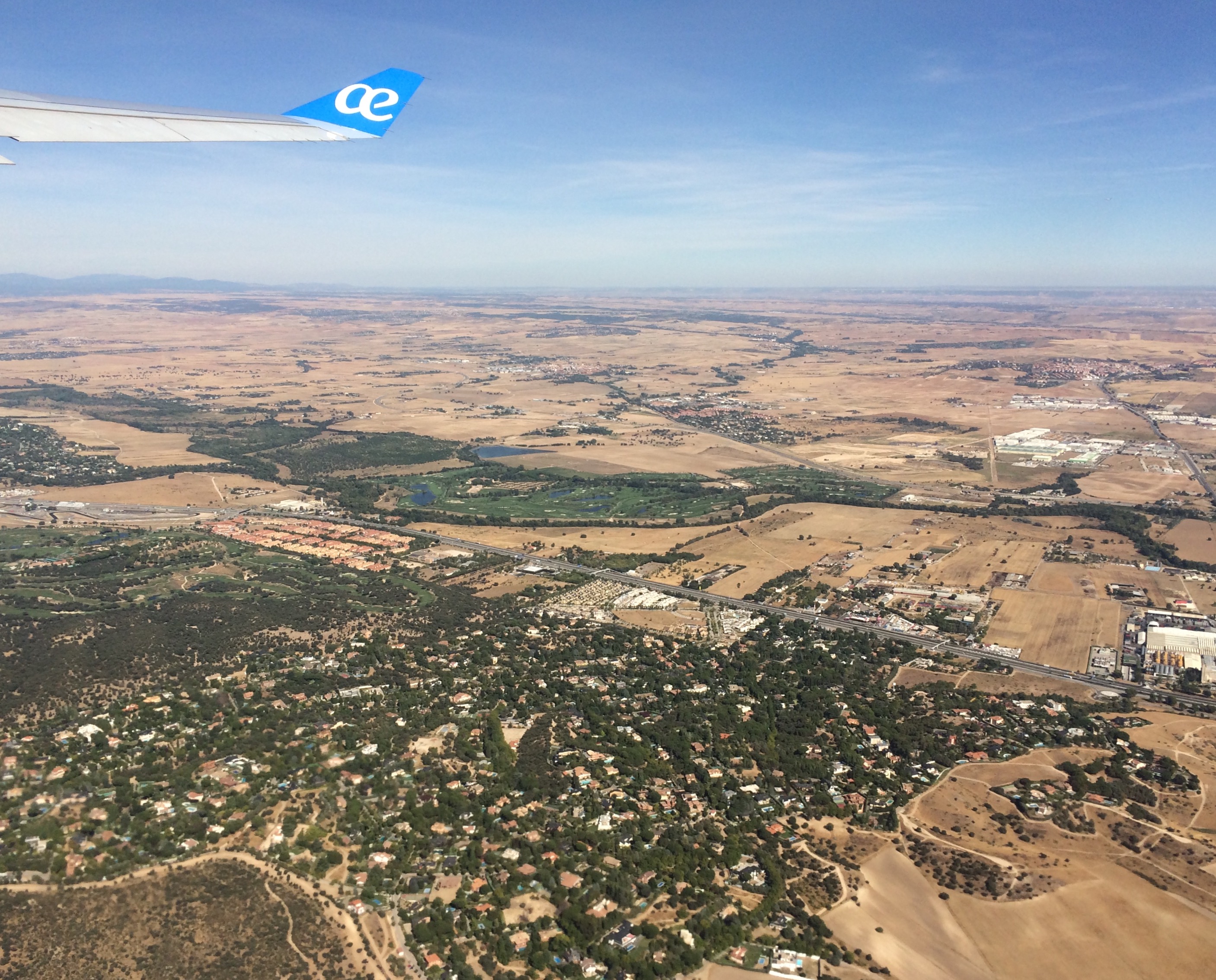 Cuando luego de solo ver nubes empieza a aparecer tierras , lagos entre otros y ver la hora dices ya estoy llegando gracias a Dios y sientes como tu corazón se emociona con una mezcla de alegría y un poco de temor por el aterrizaje , pero sin perder la confianza de que todo estará bien .