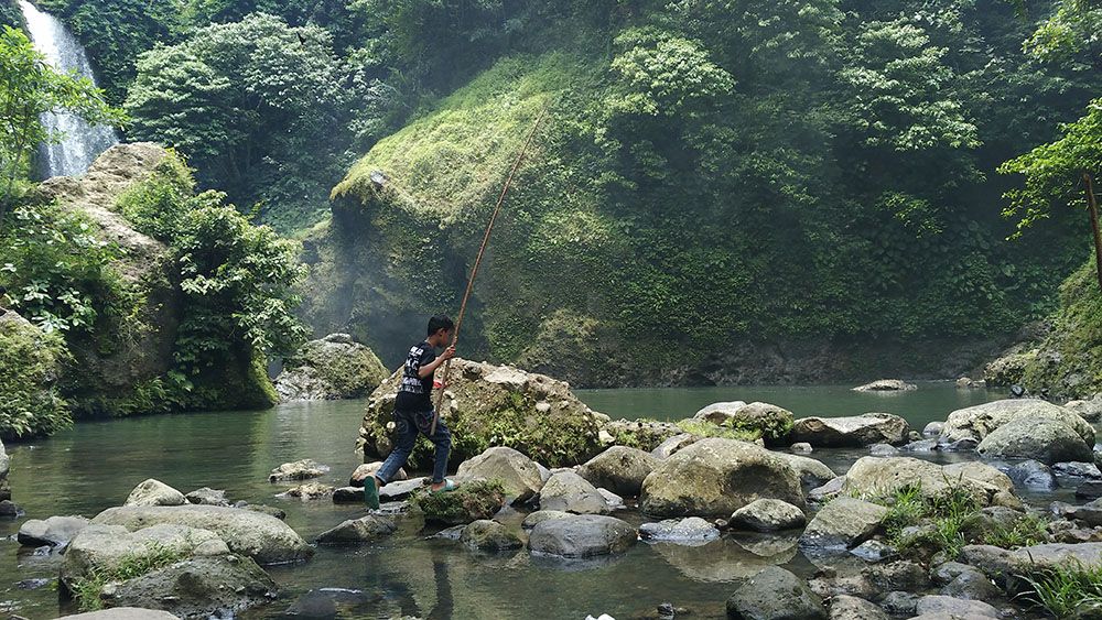 Blang Kulam waterfall is surrounded by trees that are still natural. These trees are always dampened by water, so it remains fresh and fertile.