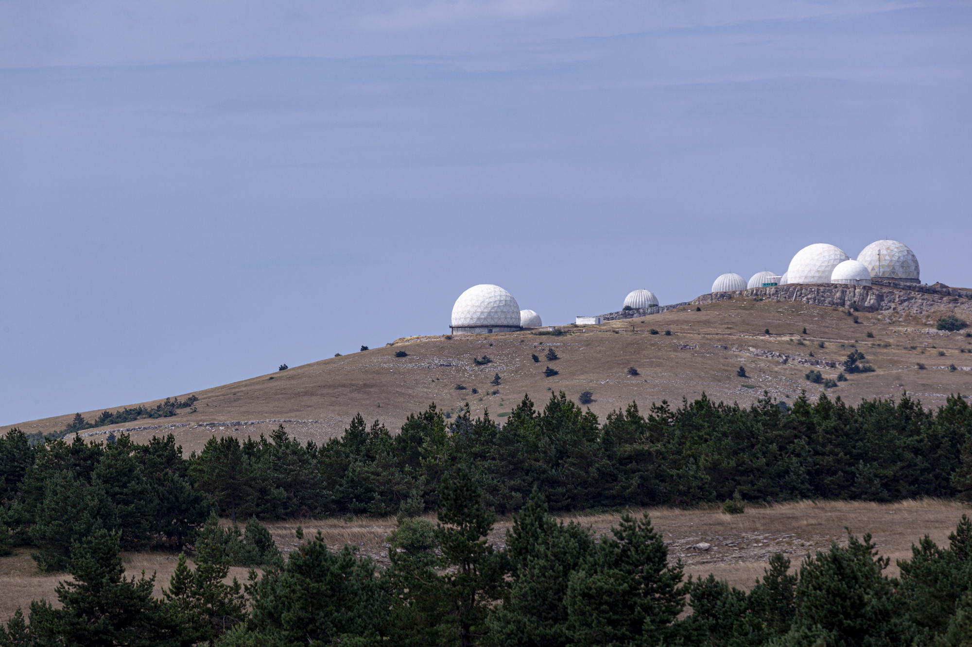 When I was walking along the plateau, I noticed strange white balls. These are probably some kind of space monitoring systems. I don't know if they are working on the profile now or not, but I know for sure that not very far from this mountain, in the village of Semeiz, there is an observatory in which scientists monitor satellites and measure the distance to these satellites, thereby solving many scientific problems.