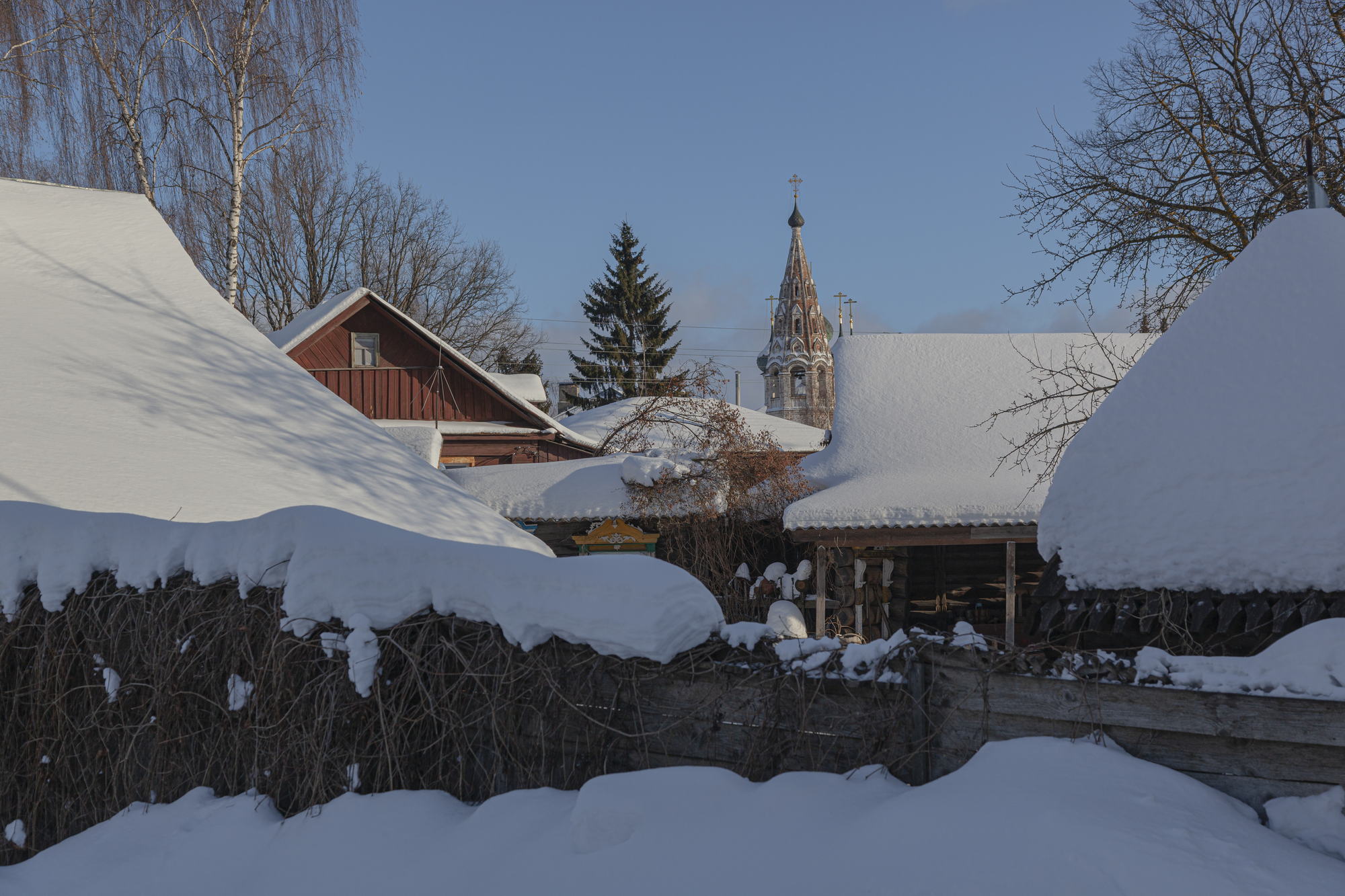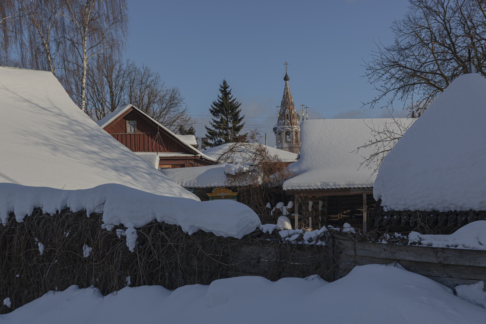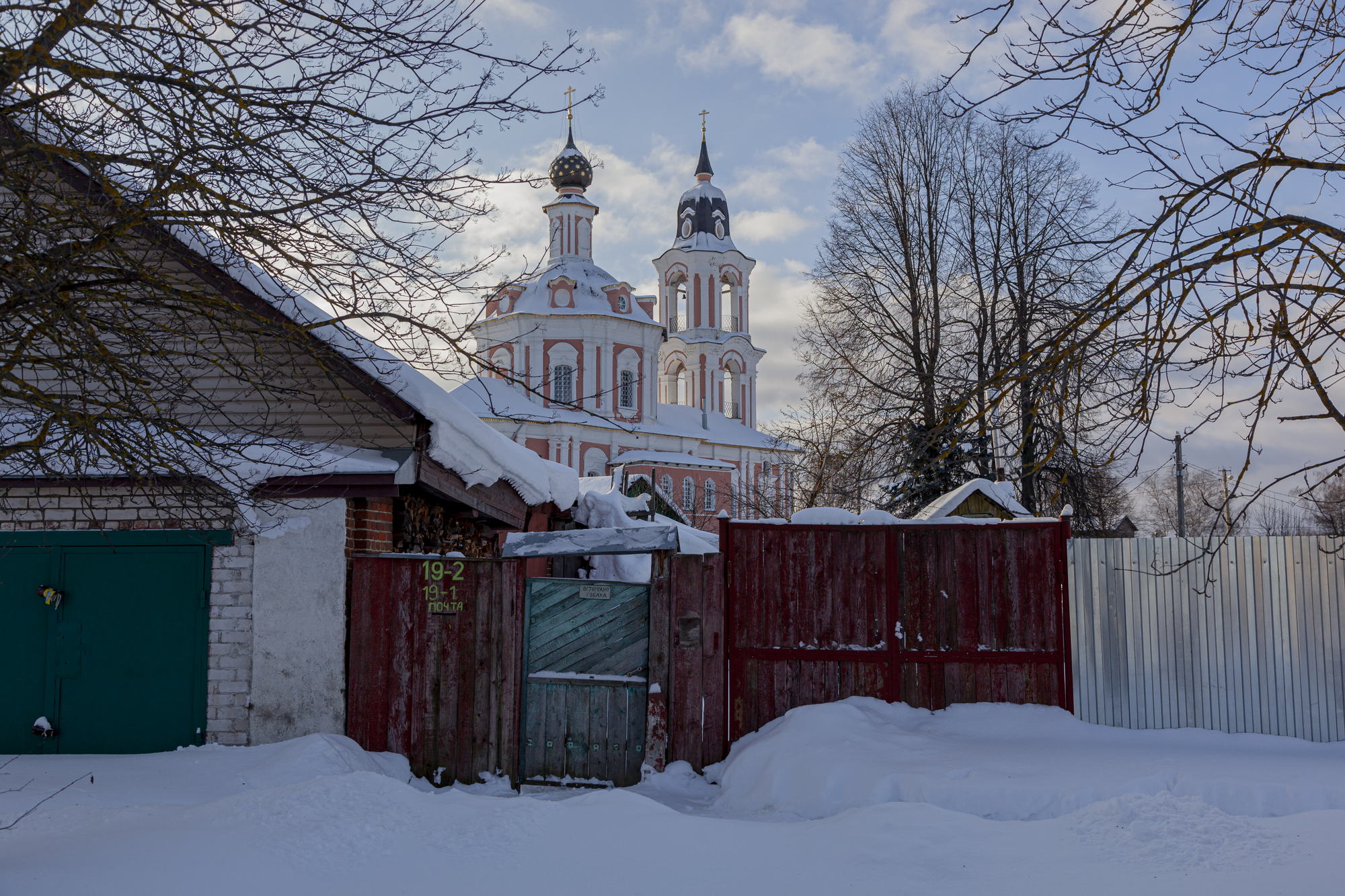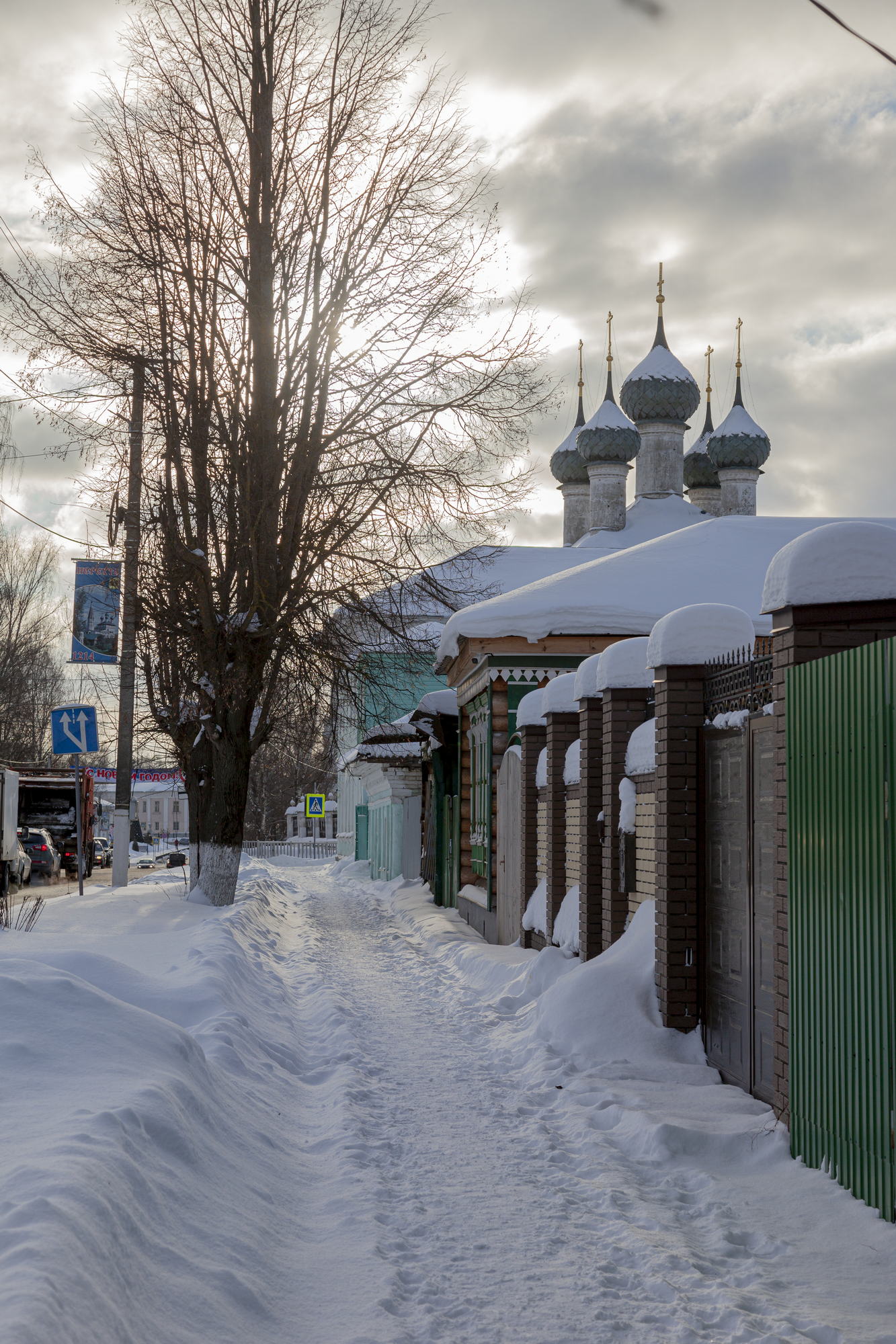 I arrived in this city in the Russian snowy winter. Snow covered the city. The old building has been preserved in the central part.