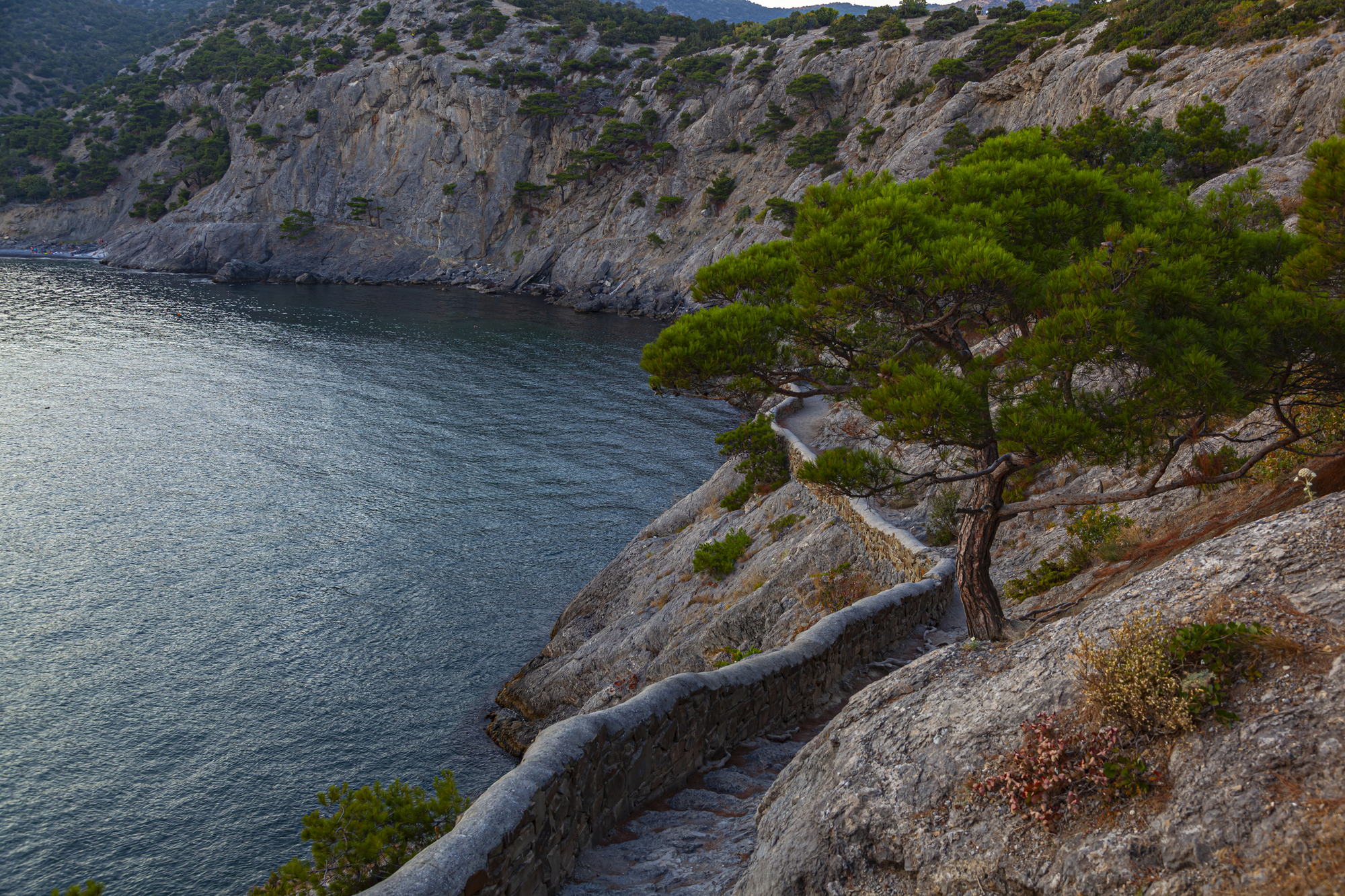 The Crimean mountains are not high, but there are very beautiful coastal cliffs among them. One of the most beautiful places in Crimea is the town of Novy Svet and the so-called Golitsyn trail.