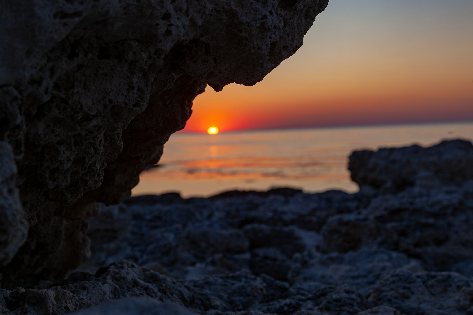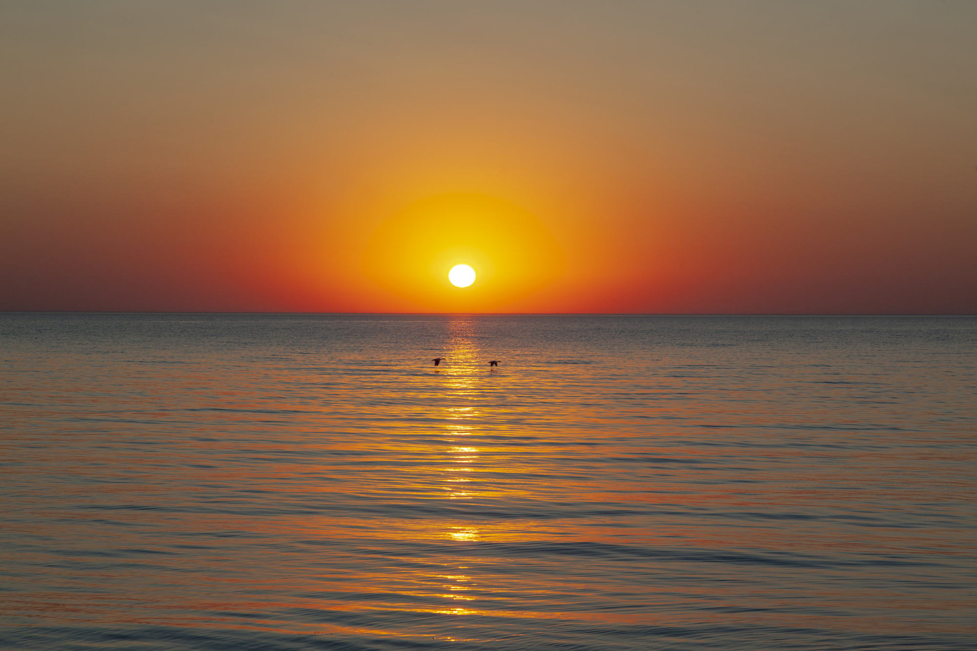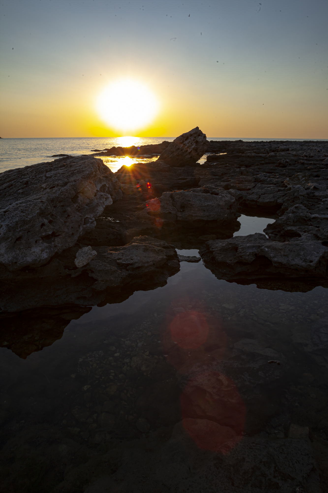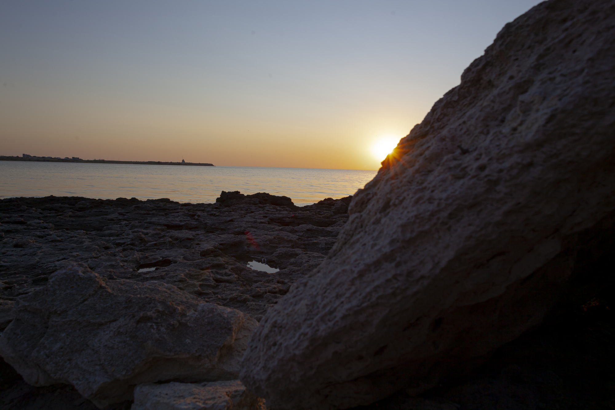 And so, I stand on black stones and watch the sunset. The majestic sight is enhanced by the absence of wind. The sea is almost calm. Light ripples on the water recede into the distance and on the horizon the yellow-white disc of the sun smoothly plunges into the dark waters.
