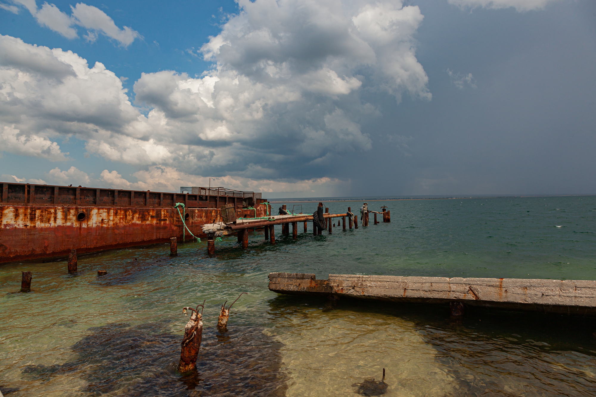 It turned out that there was no strait before. The spit separated the lake from the Black Sea along the entire length of the lake. In the Soviet post-war years, it was decided to create a deep strait, so that ships could enter the lake.