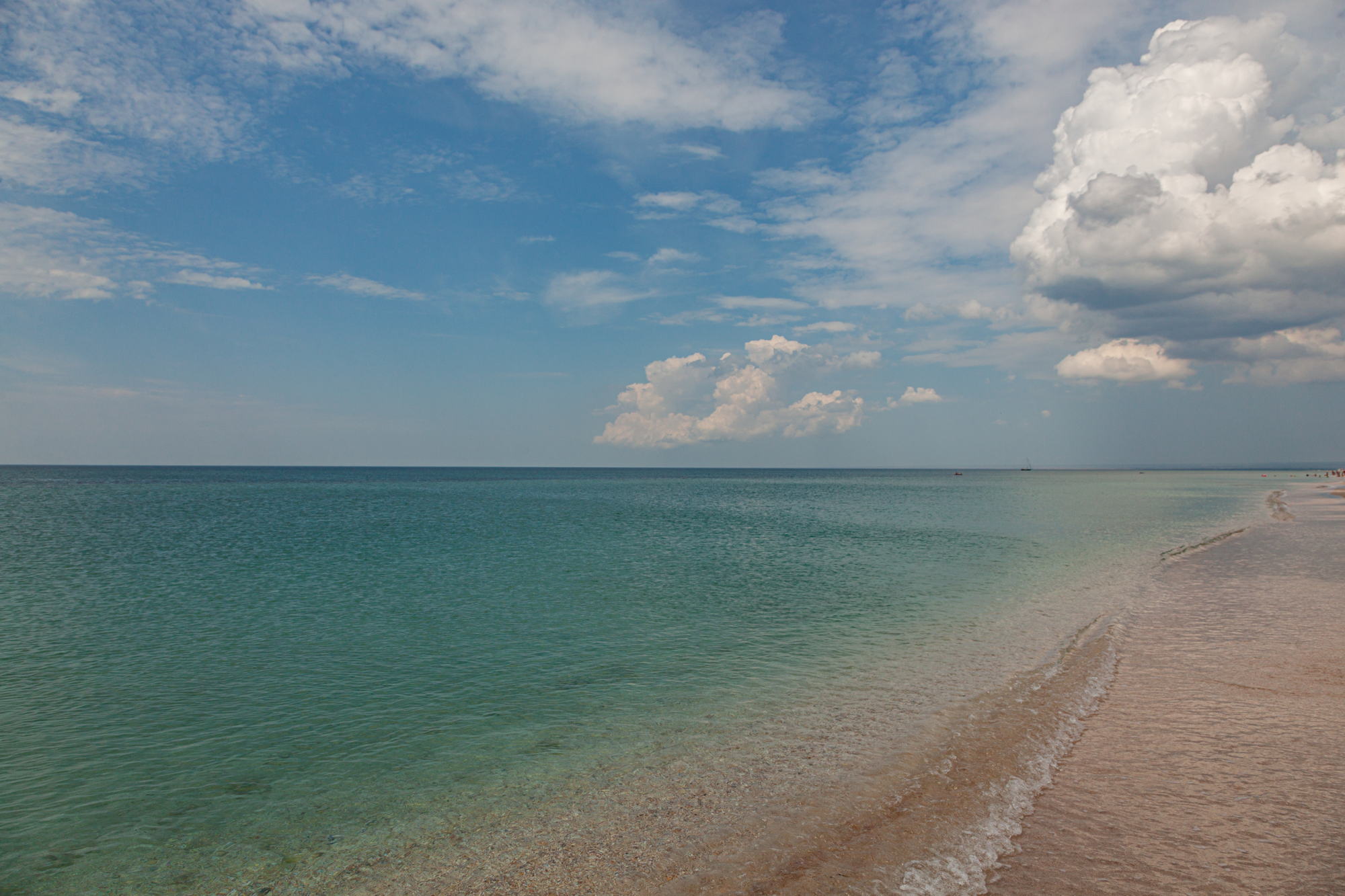 On various maps on the Internet, I saw that on the western coast of Crimea there is a long sand spit called the Kosa Belyaus. It is divided into two parts by a strait that flows into Lake Donuzlav. When you look at the map, this lake looks more like a bay.
