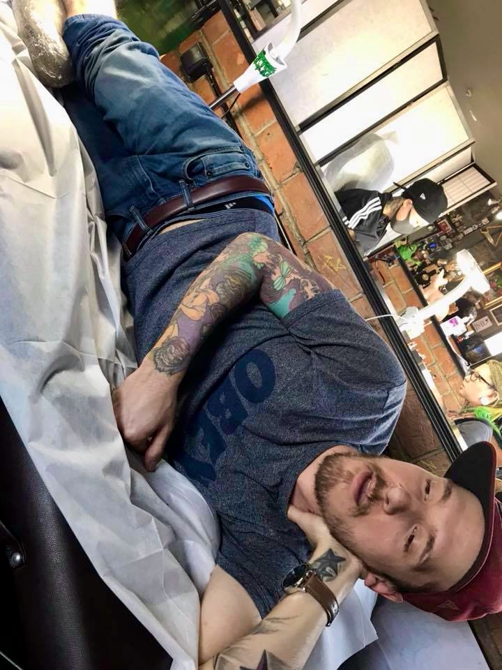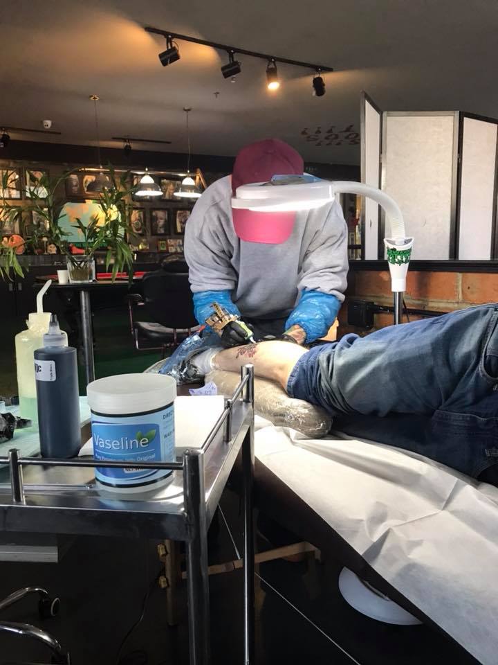 Shanghai Tattoo proved to be the best tattoo shop I've ever been to. Not only did they have an impressive portfolio of work, but they had a bar right next to the tattooing area. On the opposite wall from the bar stood none other than a stage with a stripper pole. Amps and guitars sat in the corner. And their bathroom...