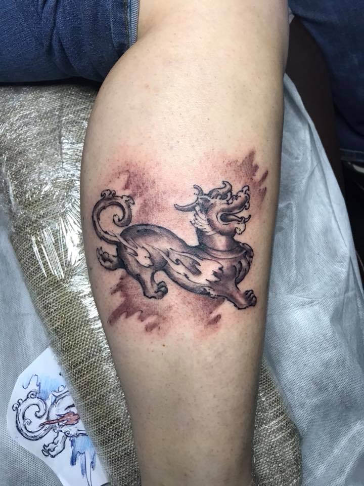 Back in the Forbidden City, we learned that the Feng Shui symbol Pi Xiu can accumulate wealth and drive away bad energy and evil spirits. Many Chinese individuals have Pi Xiu facing the front door inside their homes. Pi Xiu acquires wealth from the outside but it never has a bowel movement; therefore, wealth always stays. My cousin and I went to downtown Shanghai and got matching tattoos of Pi Xiu.