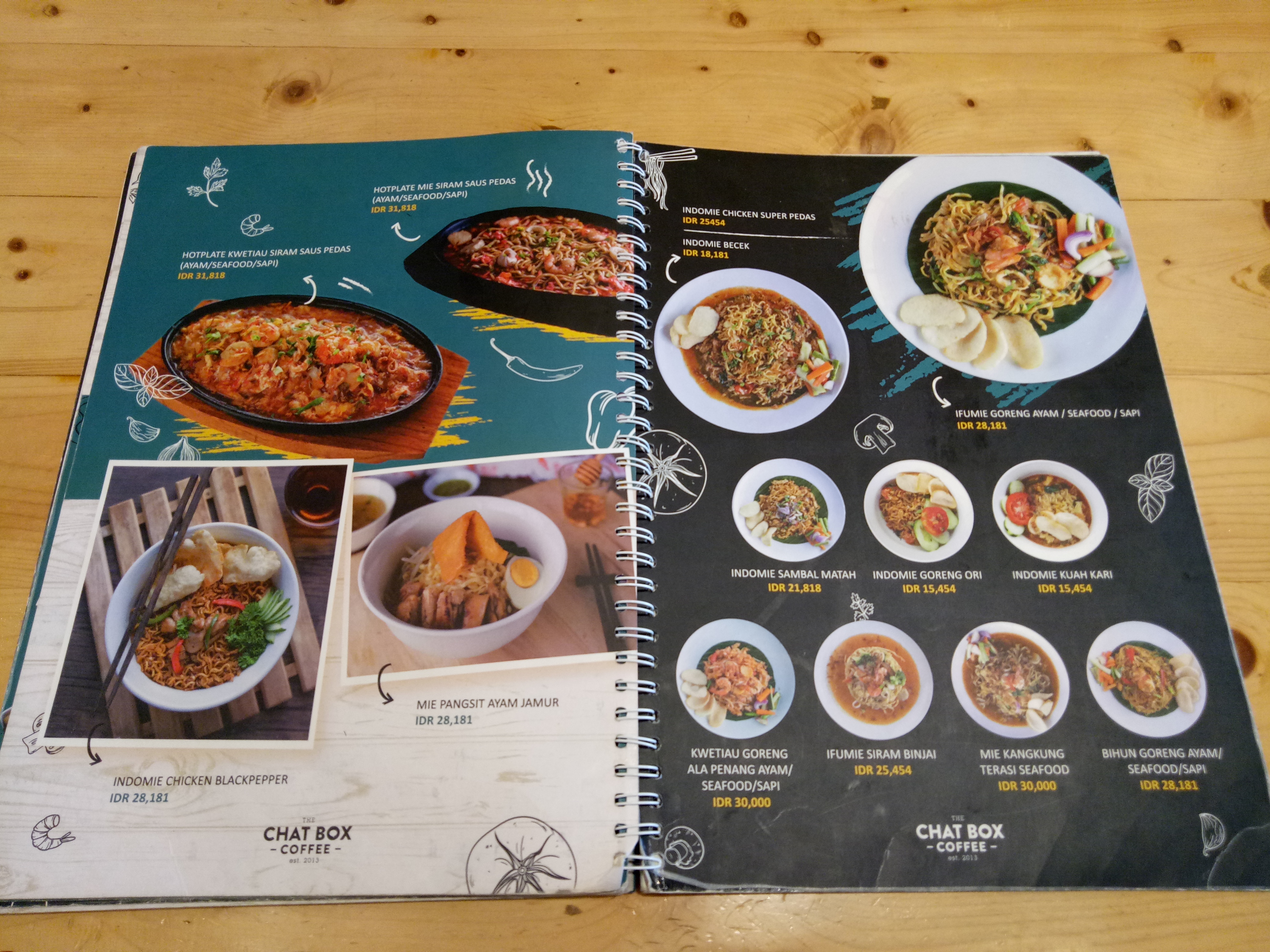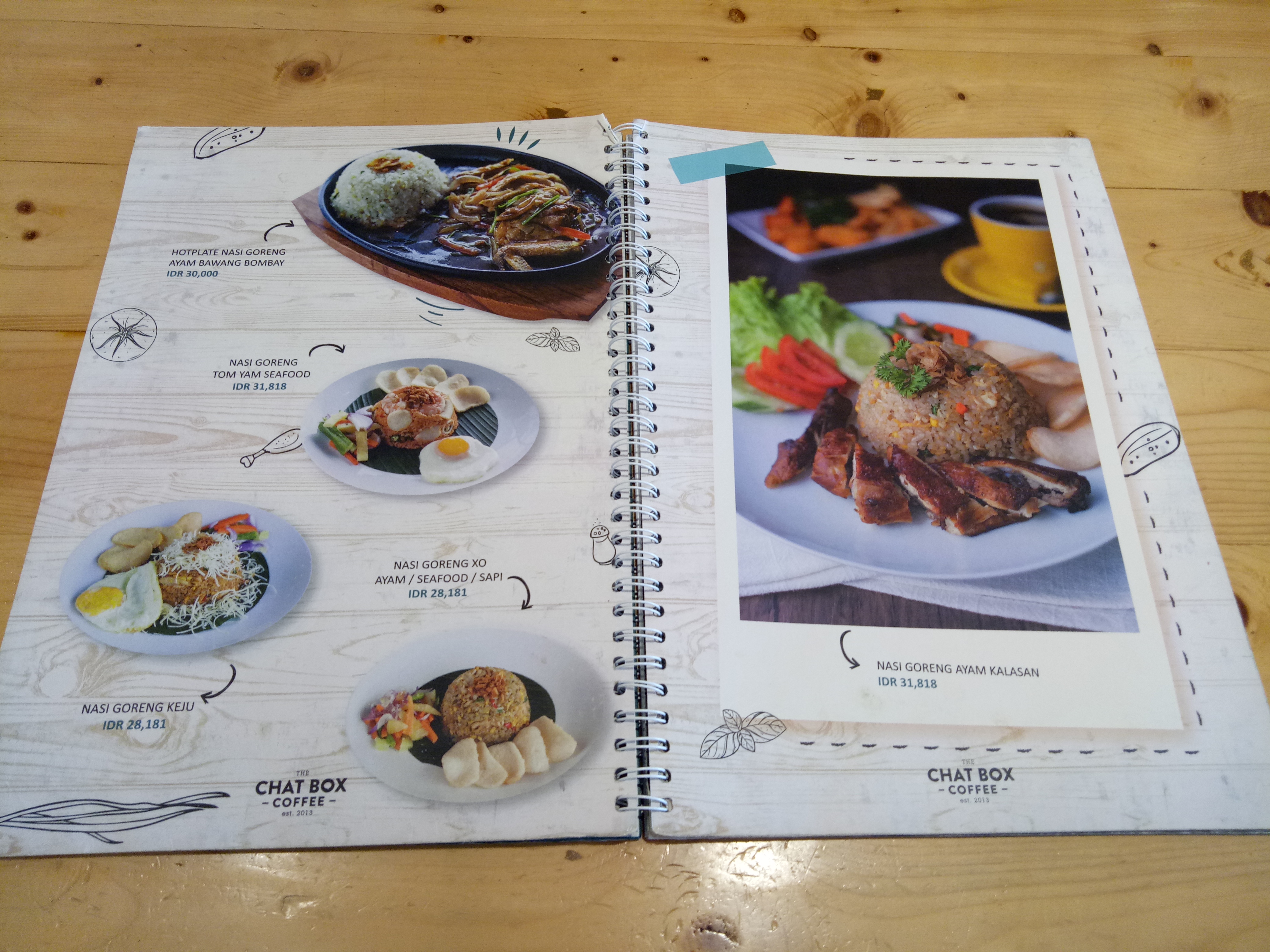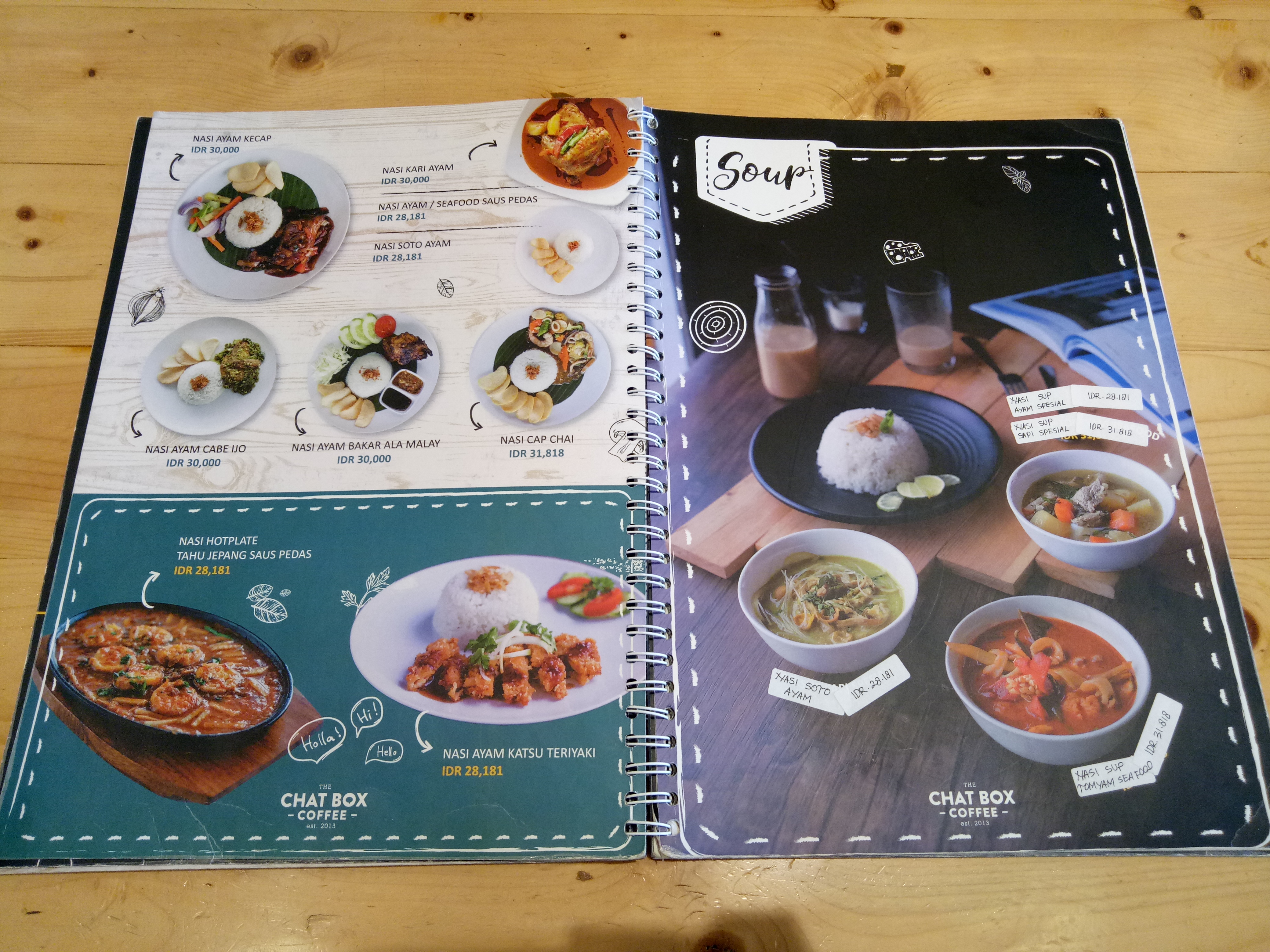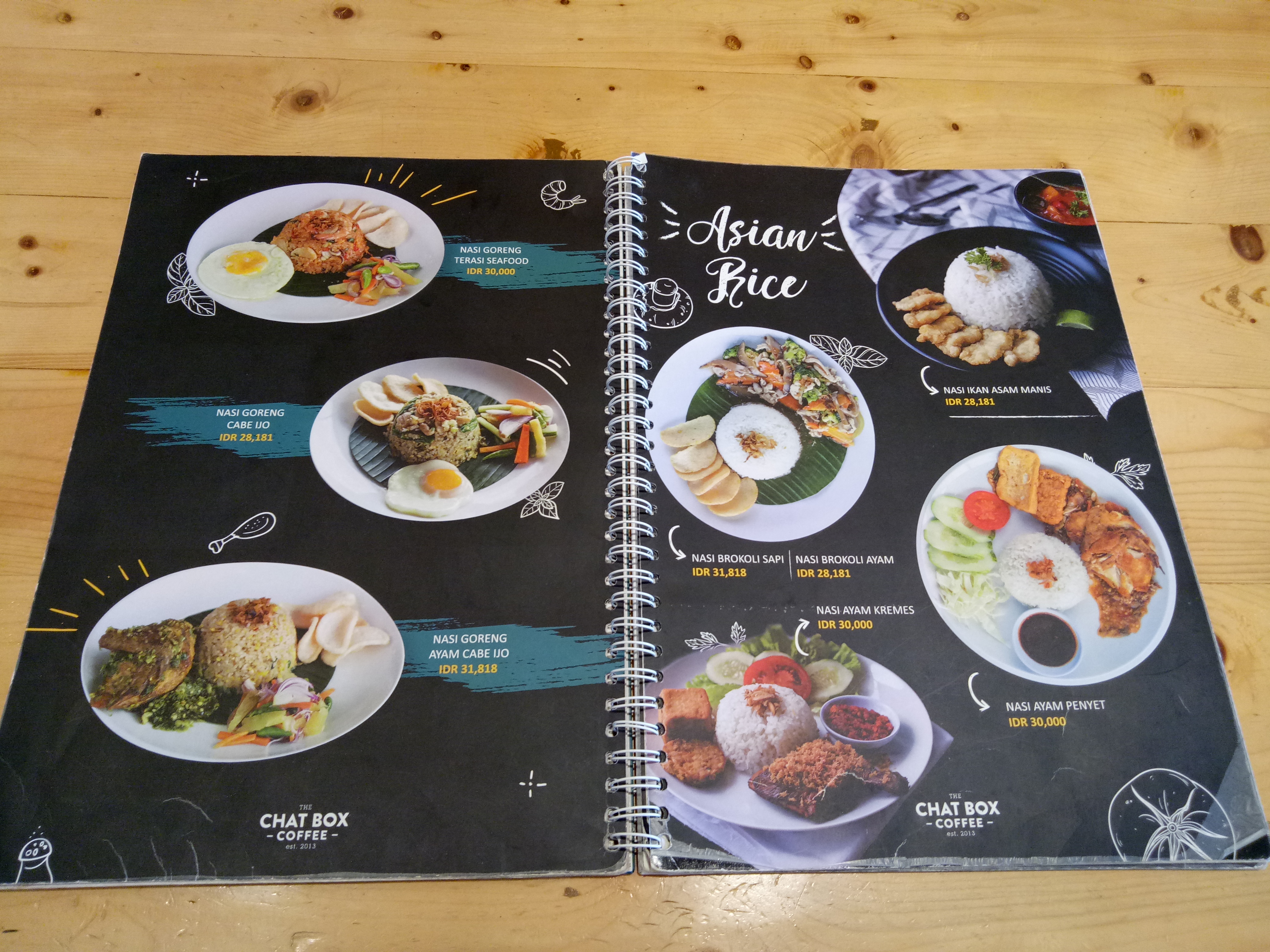 This is a menu of Indonesian people's love that you should always try when visiting Indonesia. :) Chat Box Coffee provides a variety of fried rice with interesting toppings and fillings including: Special Fried Rice; Javanese Fried Rice; Curry Fried Rice; Pineapple and Curry Fried Rice; Chicken / Beef Black Pepper Fried Rice; Cheese Fried Rice, and many more.