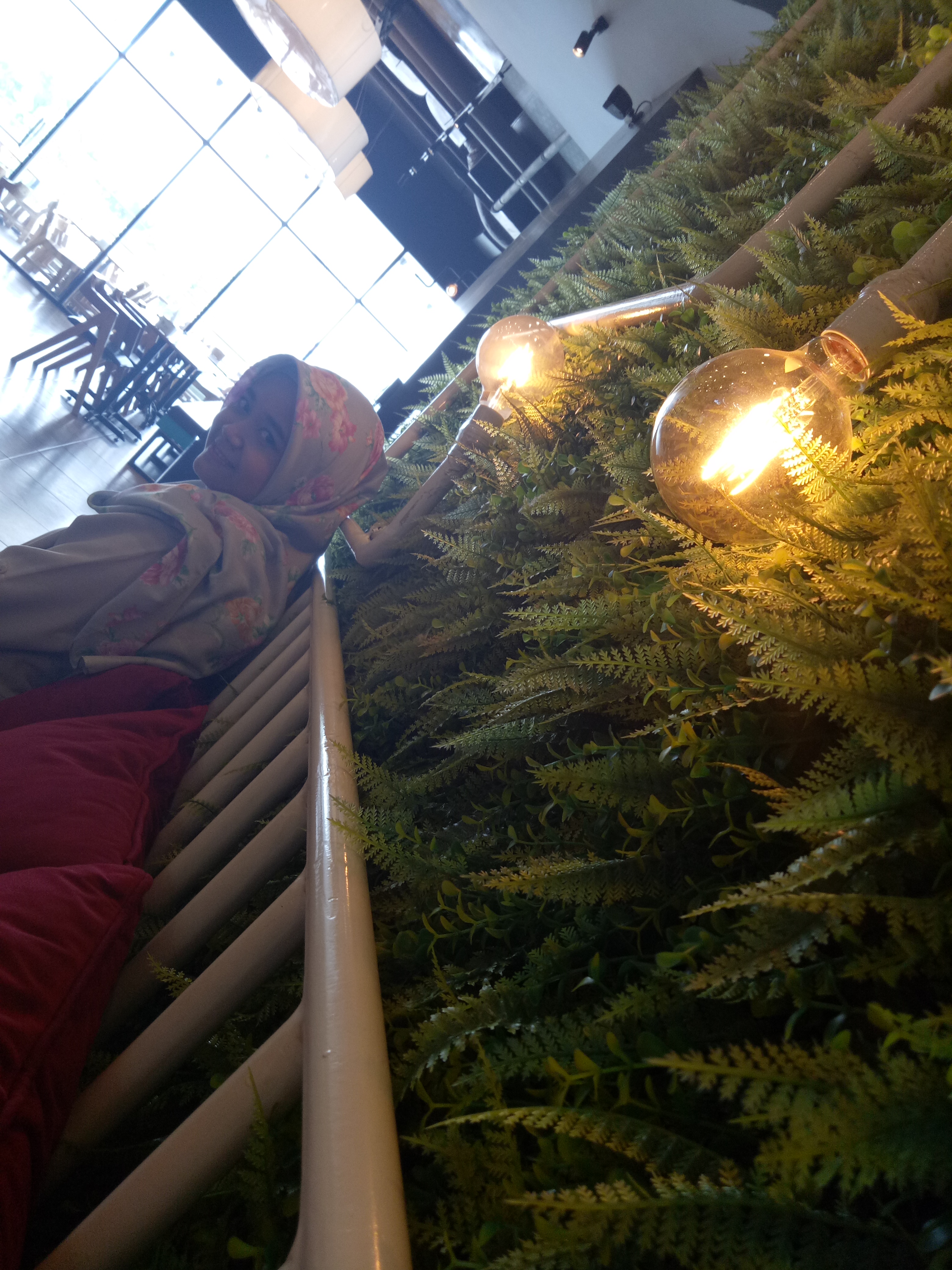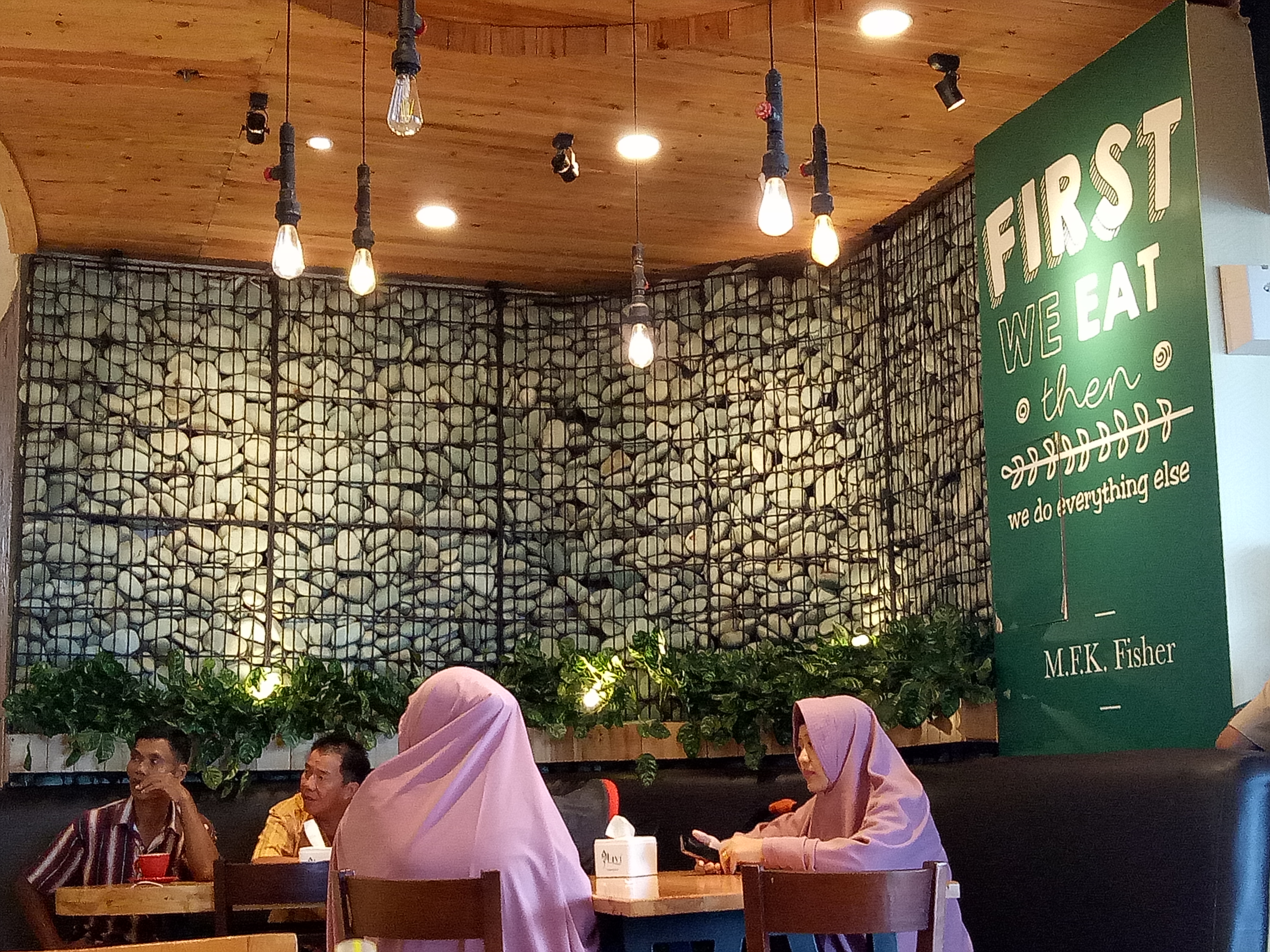 There is a place that catches my attention with a name sign that is decorated with a bright light bulb. So, I set up my foot into a restaurant that looks comfortable to relieve fatigue.