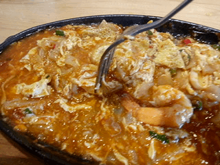 I have chosen Kuew Teow, sprinkled with spicy sauce with seafood stuffing! Yuuuumy! Unfortunately, the texture is too over-cook, causing the rice noodles to look too soft so they don't look springy.