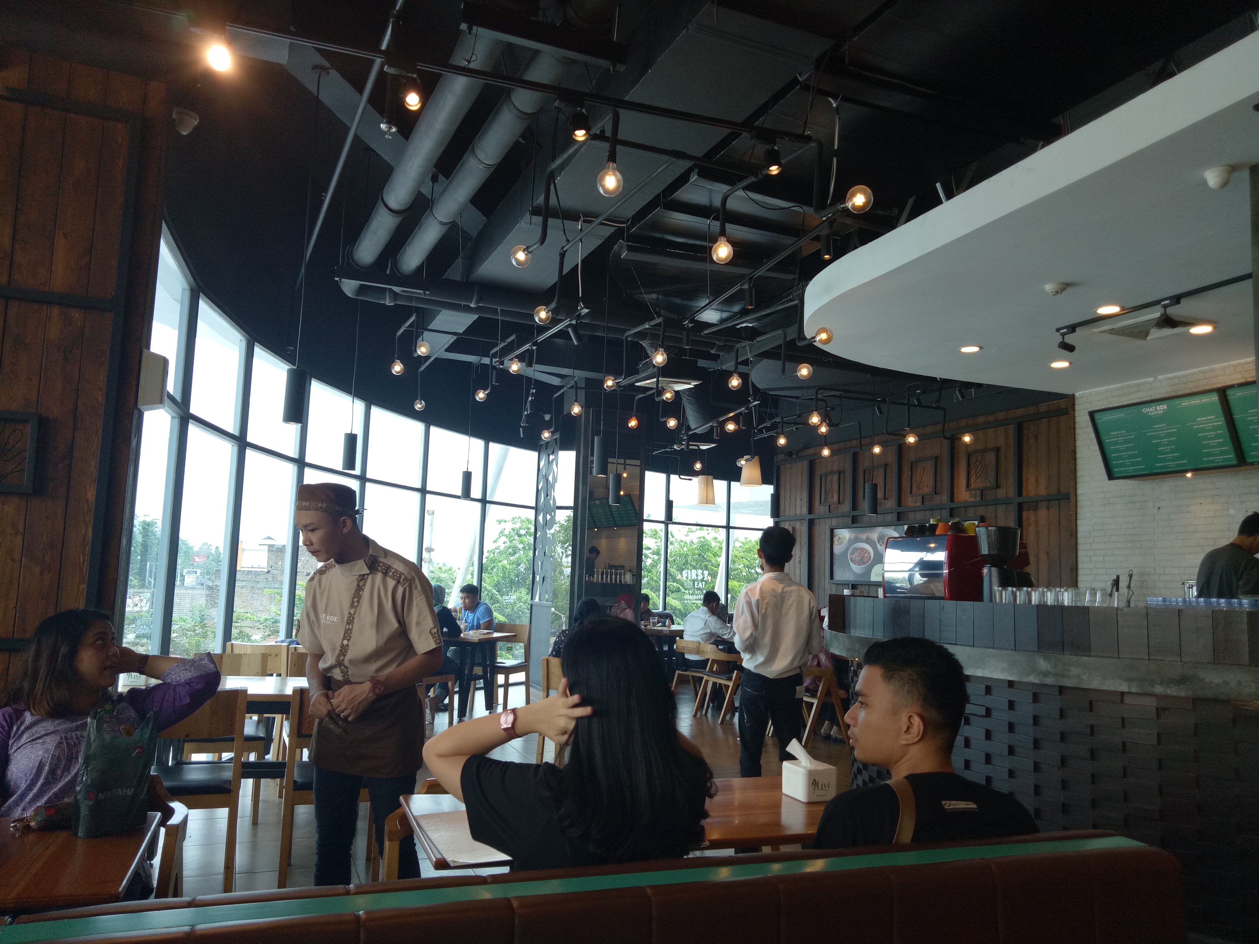 During peak hours, the service at Chat Box Coffee has no problems at all. This shows Chat Box Coffee has good service.