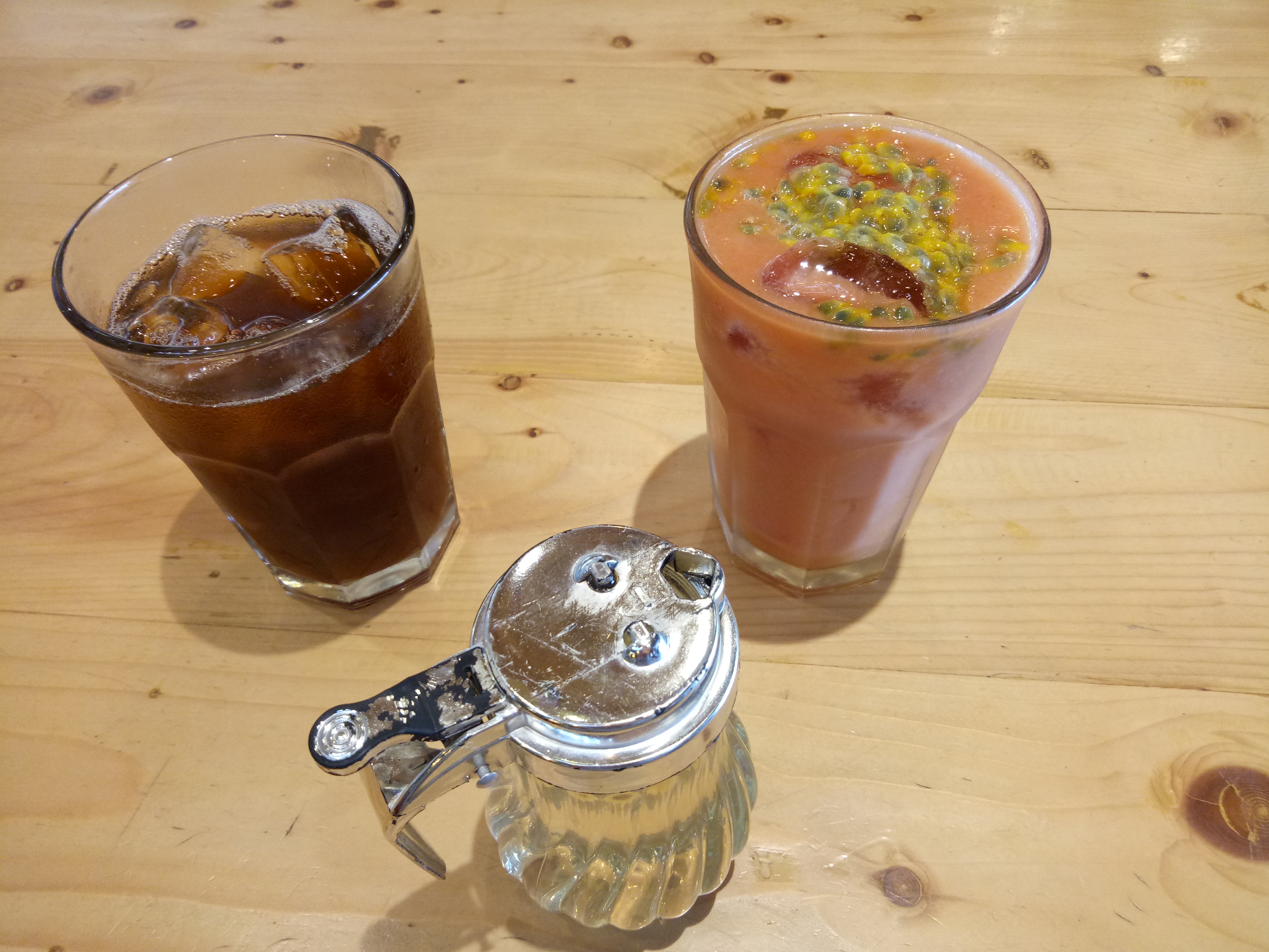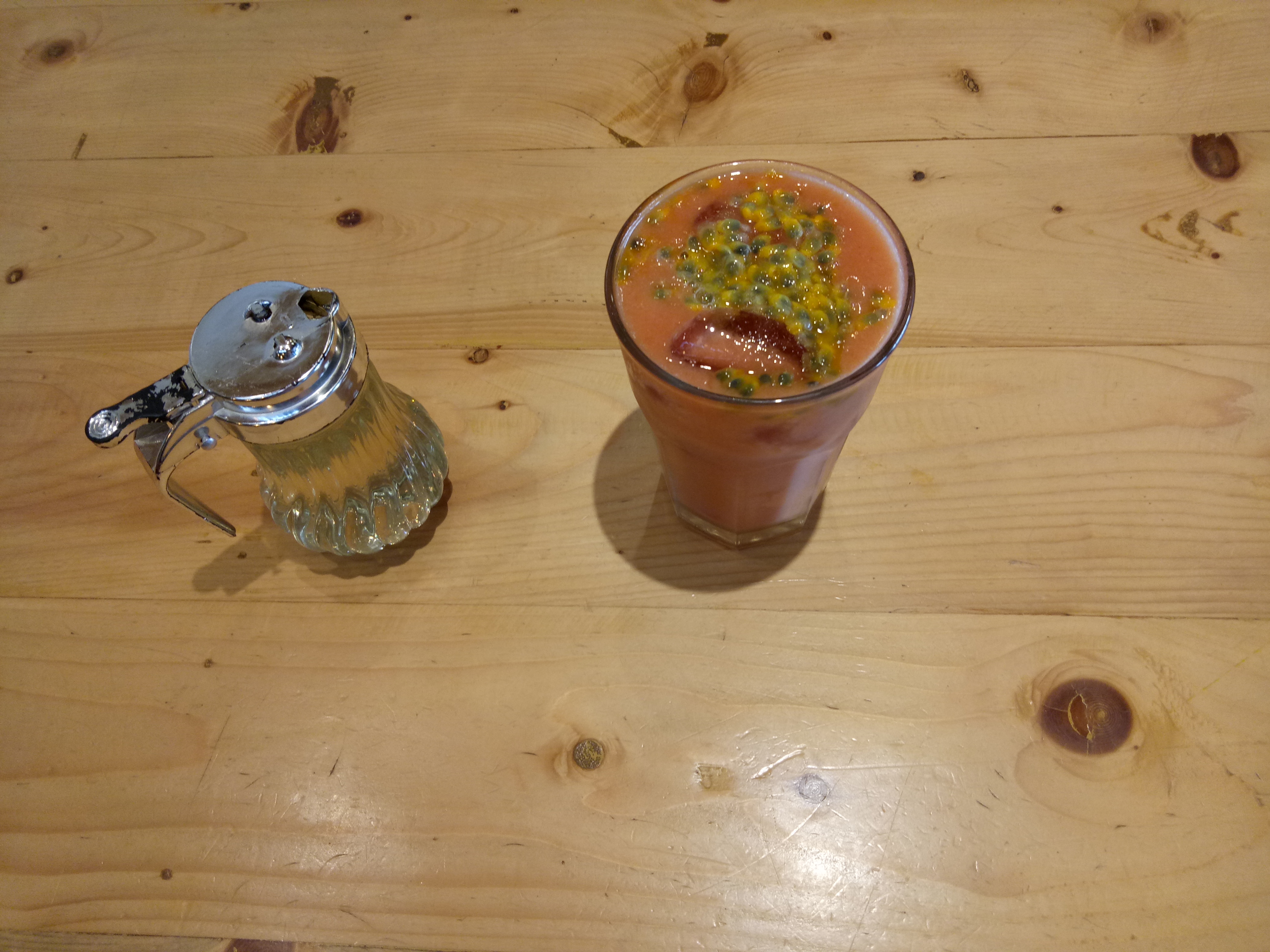 Tamarillo and passion fruit juice are served with a separate sugar liquid so you can add a sweetness level to your taste.