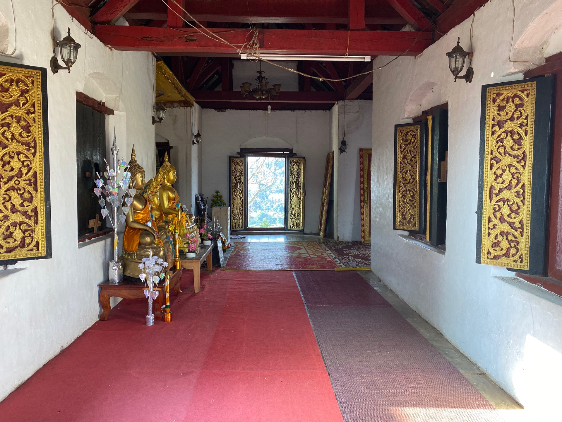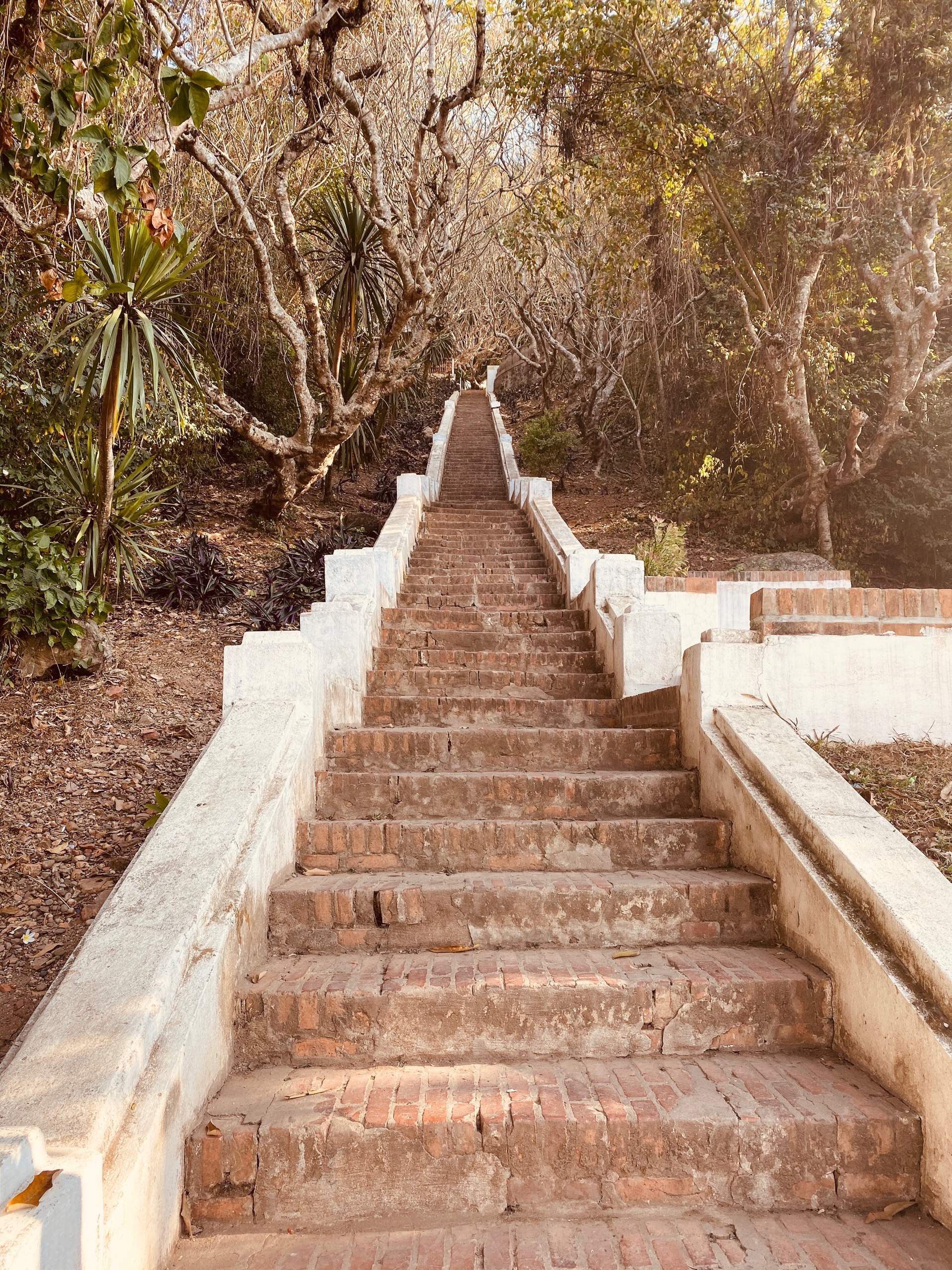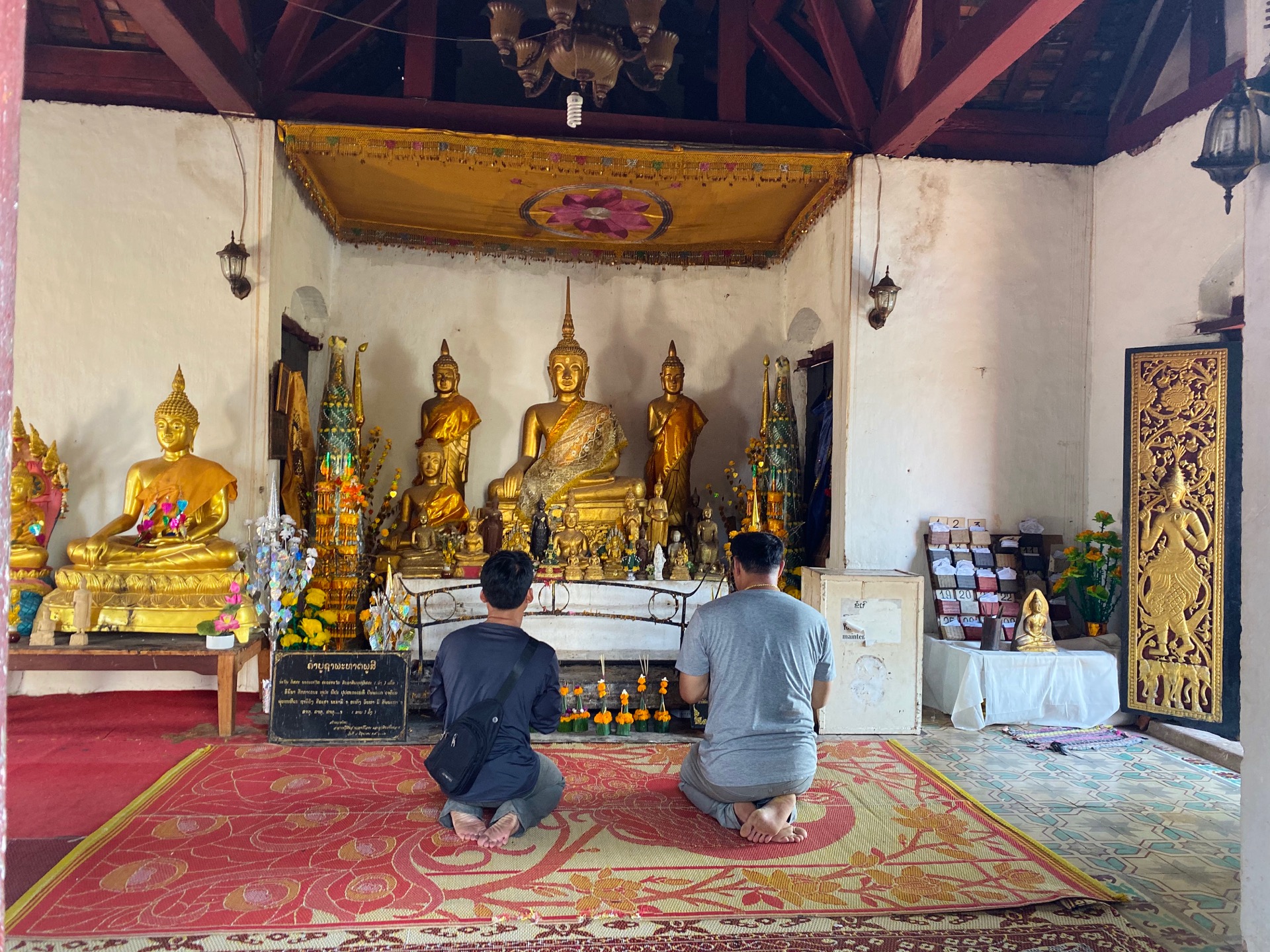 The walk is relatively easy and not too steep. It only takes around 15 minutes to reach Wat Tham Phousi Shrine. Most people only come up here for the view, but there are some that come here to pray.