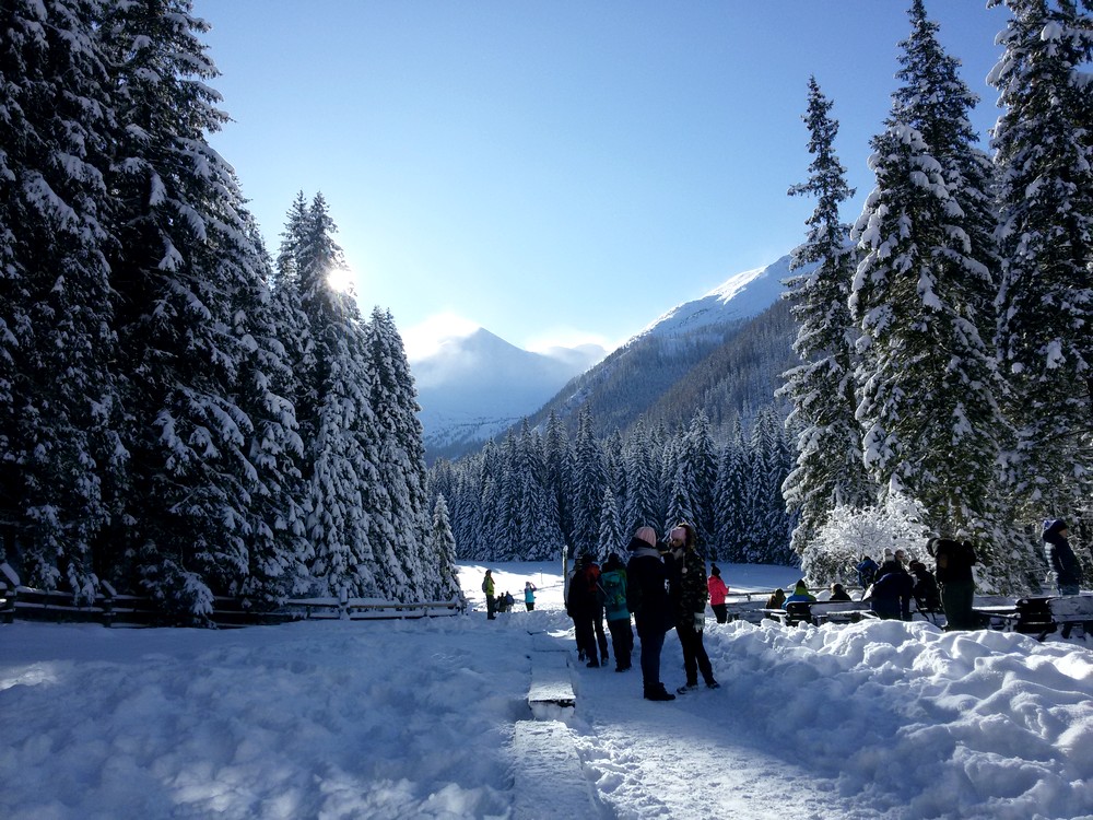 It was worth the cold for such views. Everything was covered with snow and ice. It looked beautiful and glistened in the sunny glow. The landscape looked like a fairy tale! Finally, we arrived at the hostel. We needed to warm up and drink hot tea. We spent about an hour there. Unfortunately we had to come back. The return route is easier because it descends down the valley. The hostel is about 1100 m a.s.l., while our parking lot in Kiry is about 900 m a.s.l.