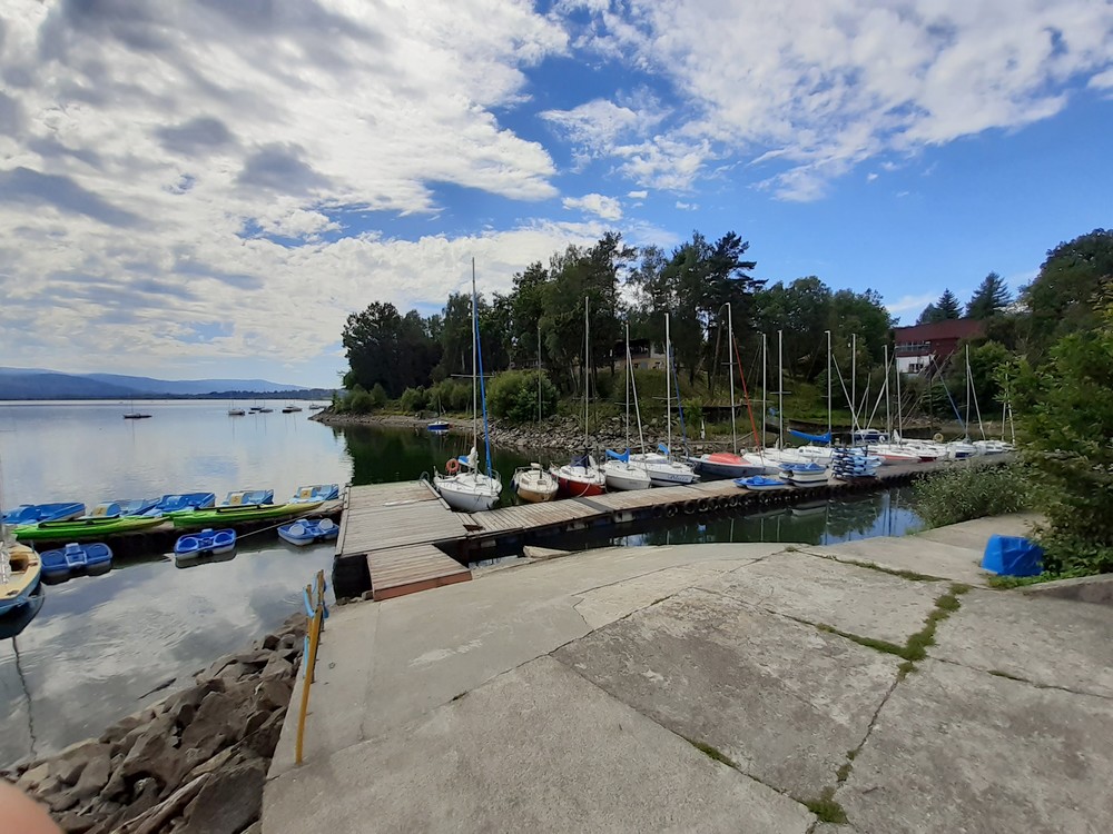 During this beautiful day there were few people in the center, because it was Monday and in Poland the holiday season was coming to an end. Thanks to this, I had the opportunity to use everything without queues. In the next photos above you can see the port and the whole Żywieckie Lake. On the horizon you can see the mountains of the Silesian Beskids. The area around Żywieckie Lake is very pretty. I recommend this place to everyone who wants a break from life in the city. You won't be bored in the summer around Żywieckie Lake. Greetings to all who love traveling!