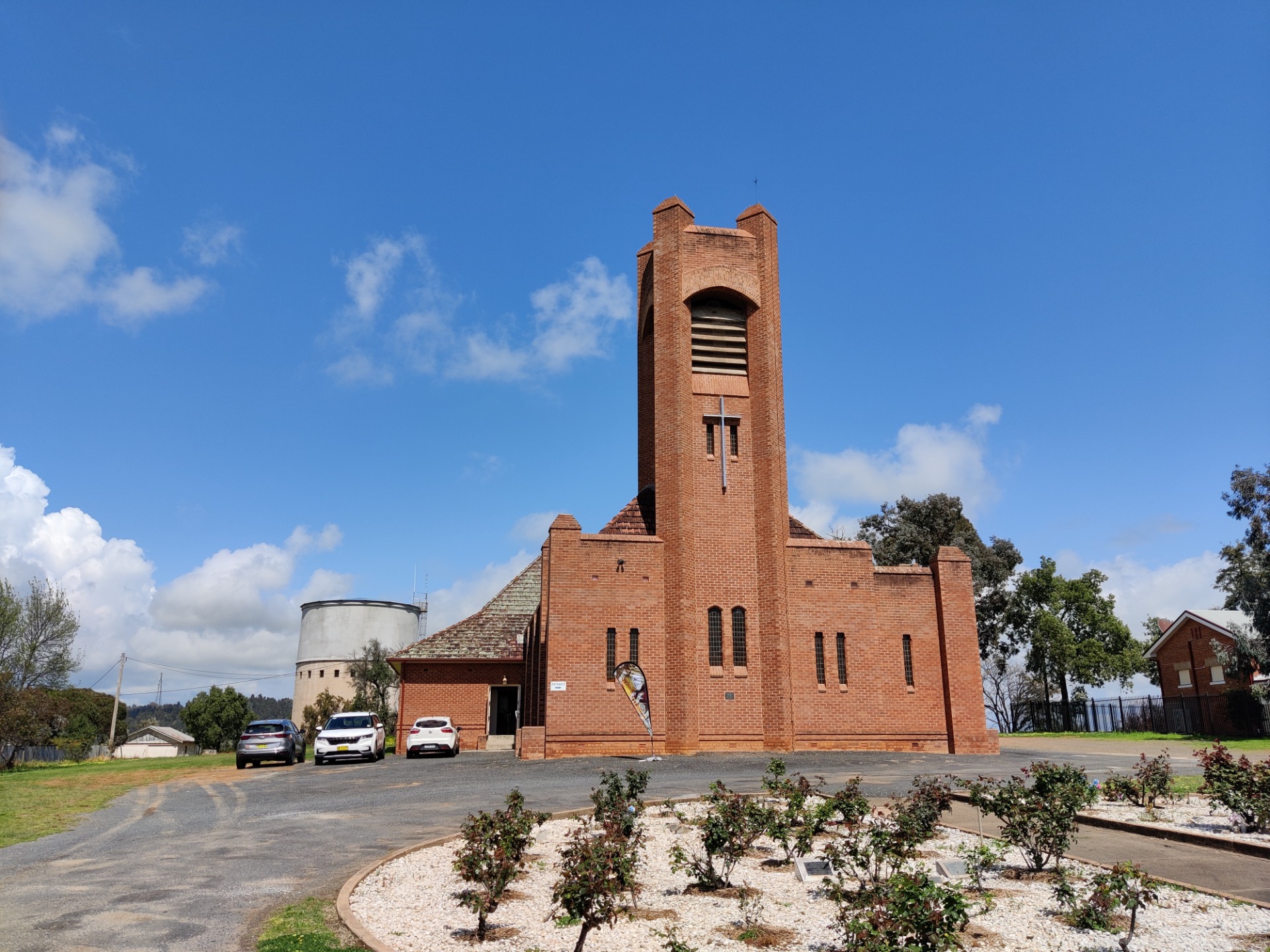 Ah, a fairly imposing brick church on the top of a hill... well, it does little pretty imposing when you are approaching from any of the sides! When it is dark, it is a touch on the spooky side of things... but in the daylight, it does look quite out of place in the native Australian landscape.