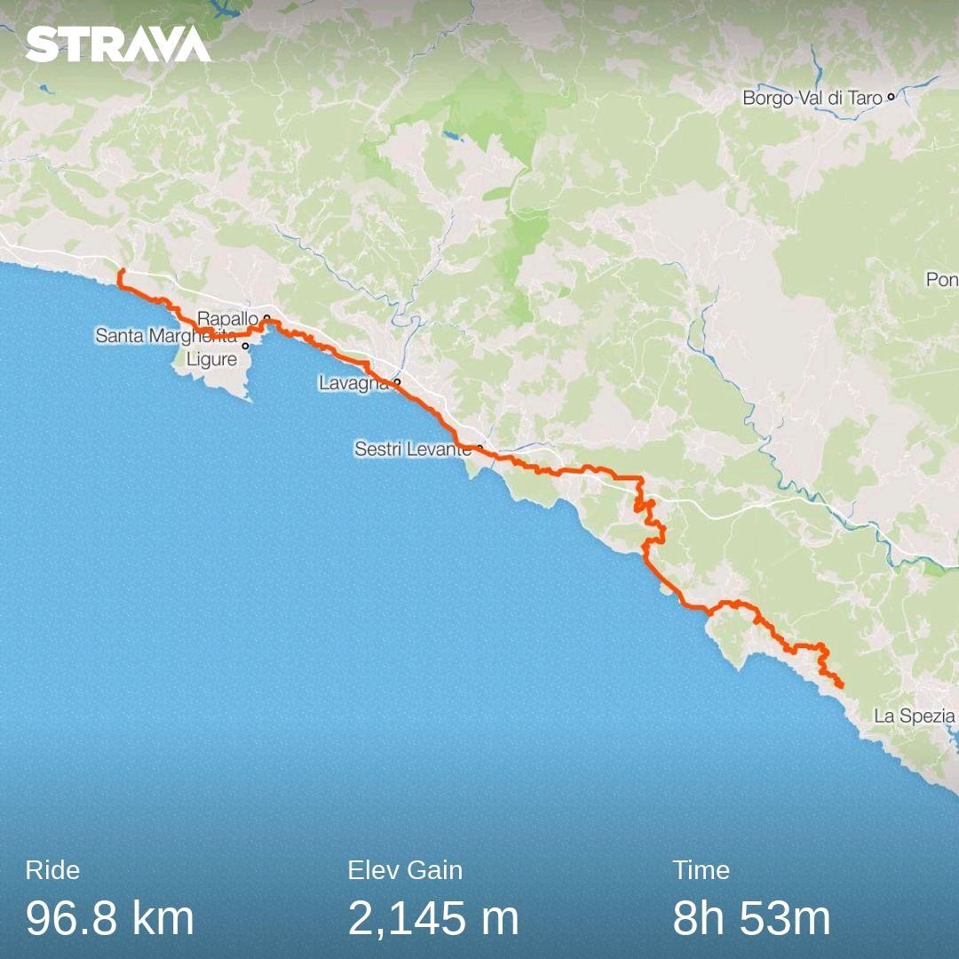 Now I understand why cycle tourists detour this part of mediterranian coast. Eurovelo route recommends another option, not going to Cinque Terre and Genova. At the end of this day, Strava counted more then 2 km of climbing...