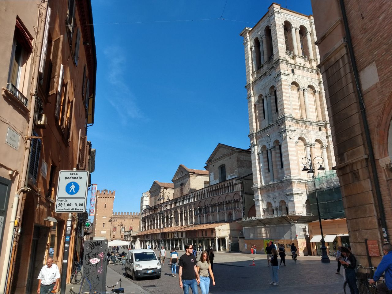 Went to Ferrara. In the middle of the city, surrounded by a canal, stands a beautiful castle. And there are many more historic buildings here, churches, palaces. Around the center there is a wall, a bit like that one in Nuremberg.