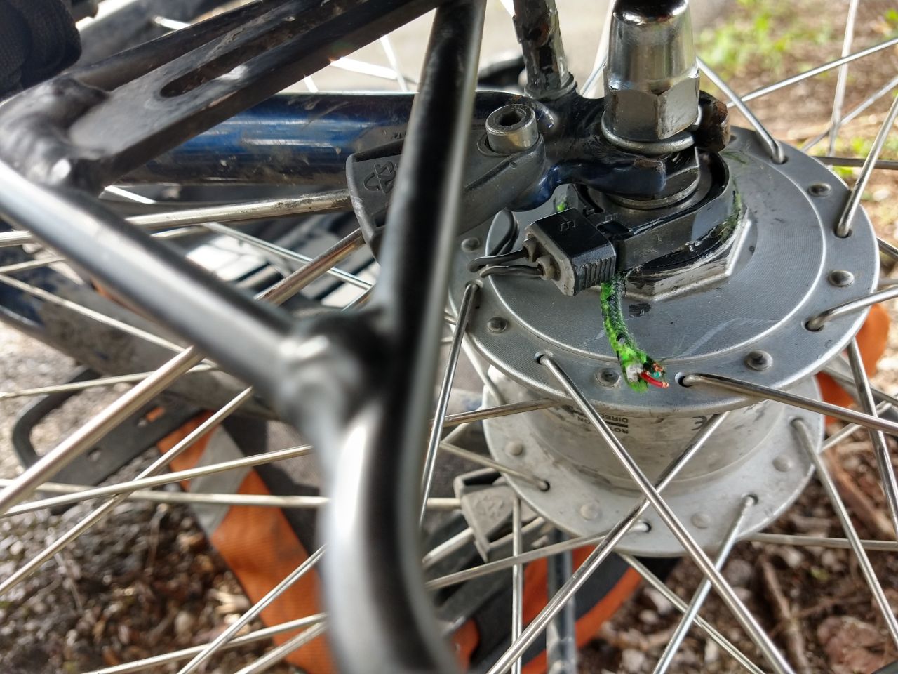 After Ferrara started to cycle to Modena. The bike path followed a narrow canal. Stopped for a dinner, and when starting again, the usb cable from my phone charger got inside the front wheel and directly into hub (that was adjusted by bike mechanic near Venice).
