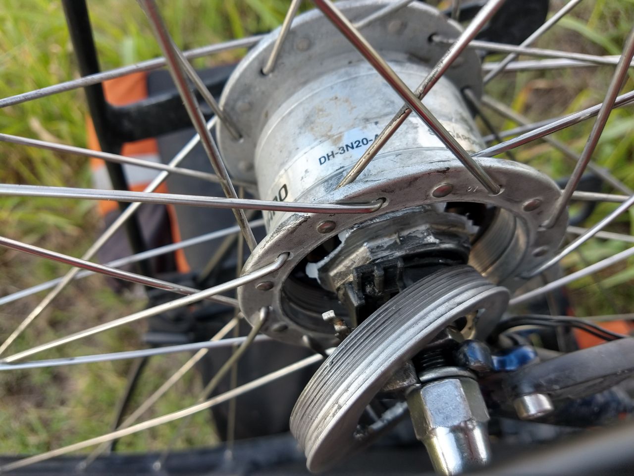 I tried to get it out, but then needed to adjust the hub again, it was shaking and working bad. The cyclist who was passing by tried to help me, when unsucceeded, took me to the bike mechanic 2 km away in the small village. That man fixed it somehow, but 10 km after that the hub crashed.