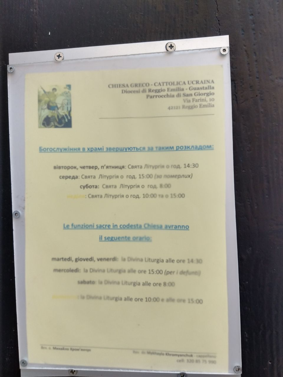 Проїхав через Реджо-Емілію, теж симпатичне місто (в Італії, здається, іншого не трапляється), в місті кілька разів почув російську мову, а потім побачив українську церкву:). УГКЦ, всередині якраз йшла служба, тому не вдалося поспілкуватись з людьми.