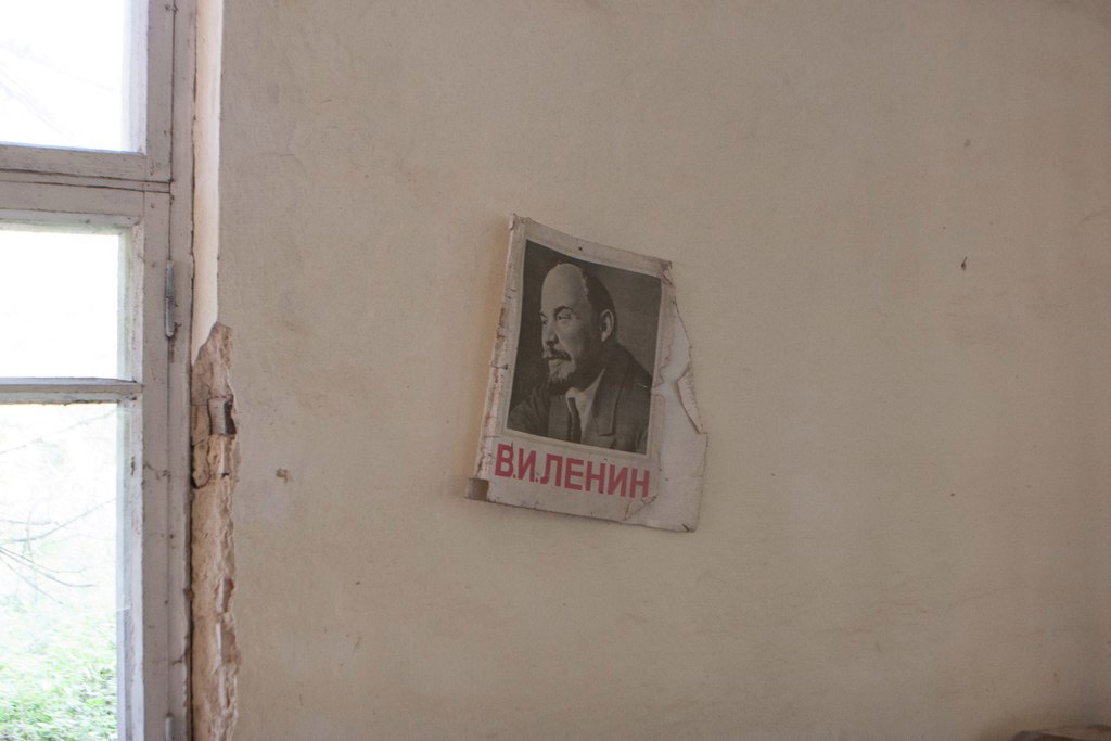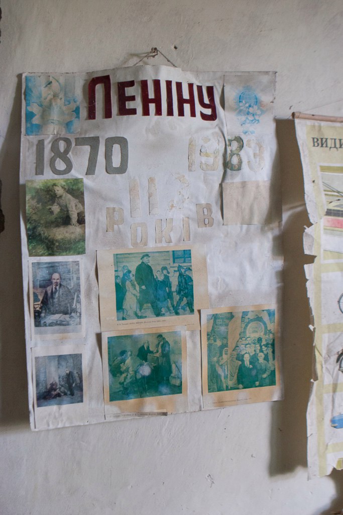 The village school has preserved books and portraits of Lenin.