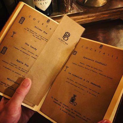 Moments later, the barman returns with three small parchment paper books. These are menus, and they artfully describe the two dozen or so specialty cocktails Le Petit Bar is offering this autumn. Or, for those more adventurous connoisseurs, simply offer a few ingredients and spirits you'd like to entertain your palette with. The bartenders will custom craft a potion for you - la création à la demande...