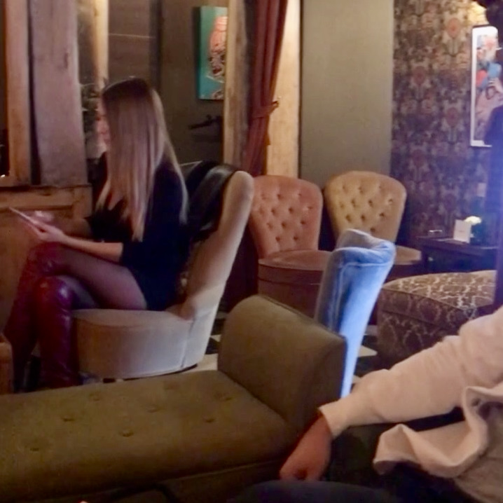 We take a seat in the rear at a soft, cushioned divan with an oversized marble table. We were ready to stretch out and relax in this cozy space, a coterie of comfort.