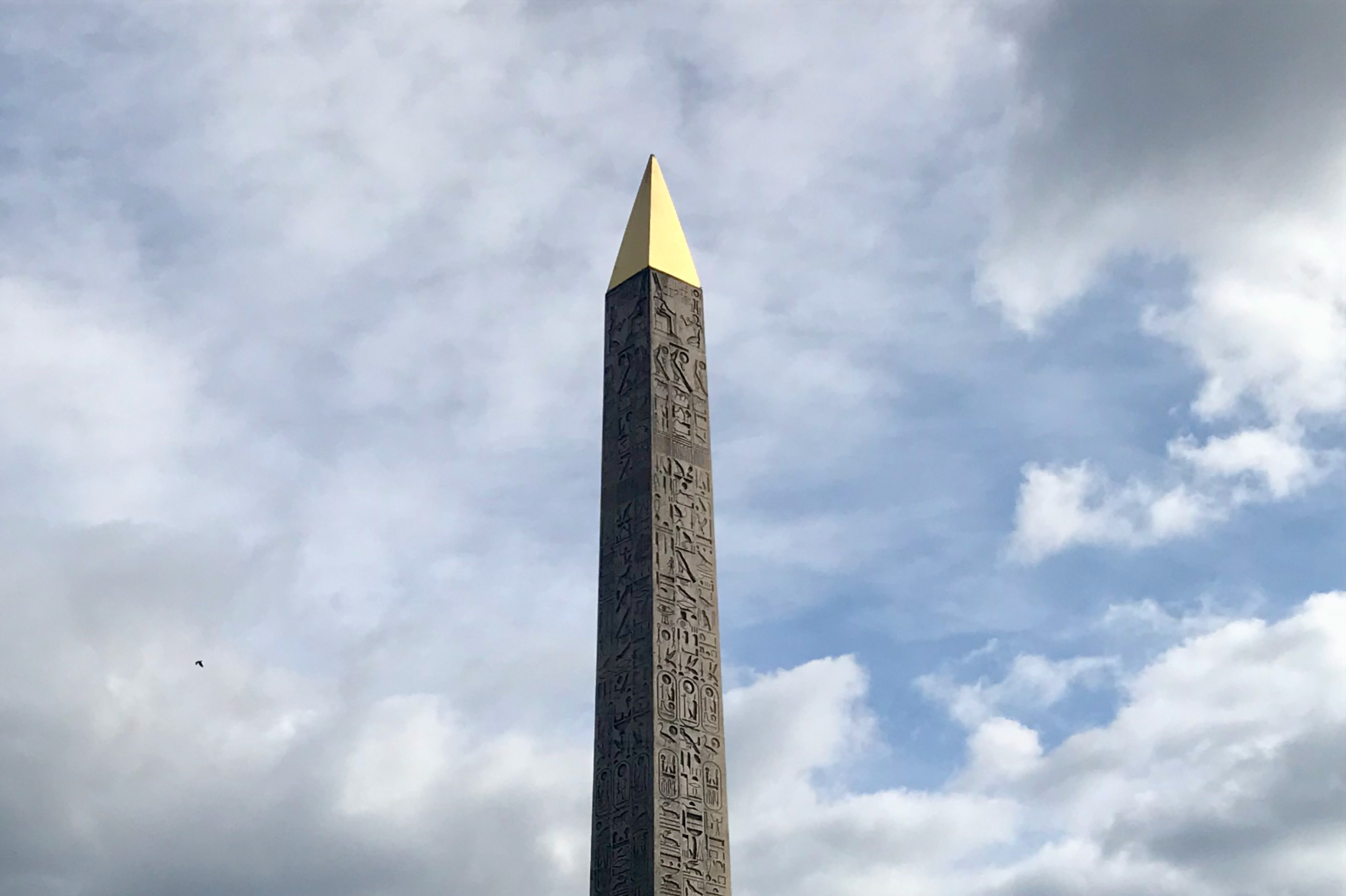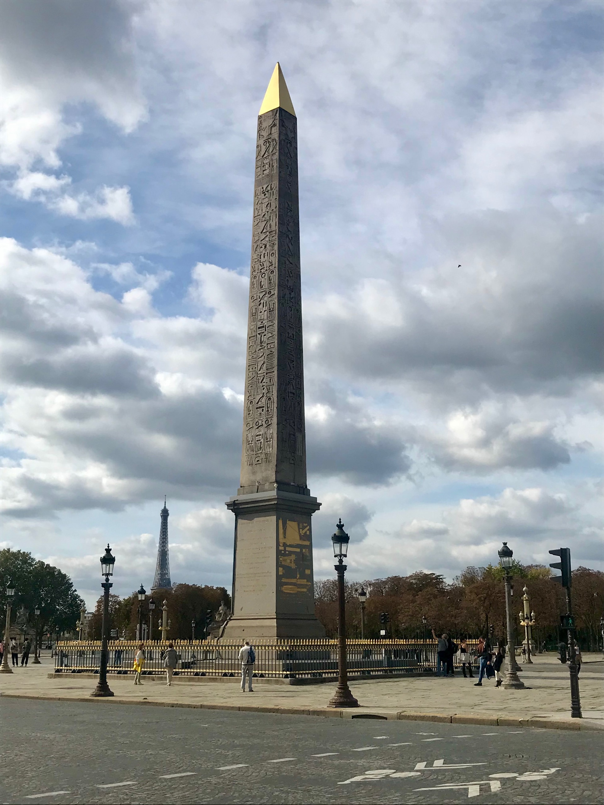Set between the broad, green swaths of the Tuileries Garden and the Jardins des Champs-Élysées is an unlikely Egyptian monument in Paris, France: The Luxor Obelisk. One of a pair, the obelisk juts up into a cloud-packed sky on this mid-October afternoon in the French capital.