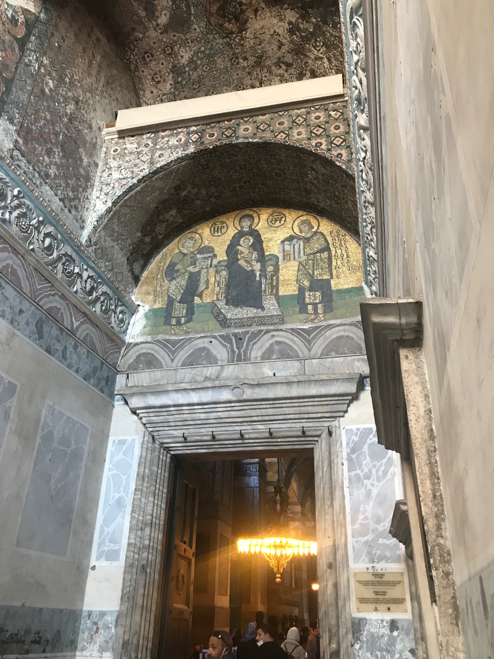 I stepped aside from the crowd that made their way steadily inside. Looking up, I saw the Vestibule Mosaic, which has stood guard over this doorway since around 1000 AD.