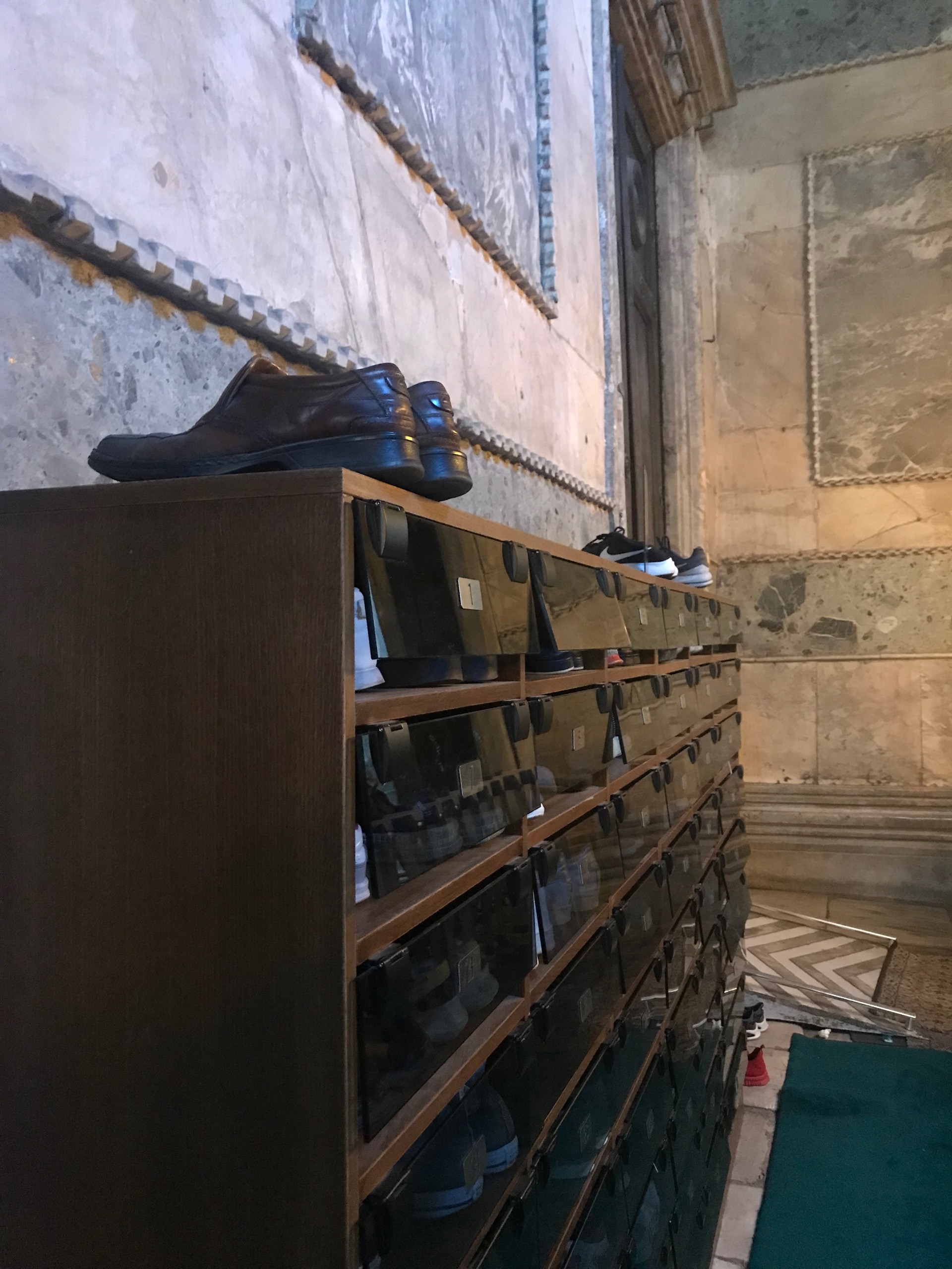 A small group of Muslim men and women also waited beside me as the knot of people attempted to clear the narrow gap. Once there was an opening, I waved gently to the small group, and with a smile and nods of heads to me, they passed through to place their sandals and shoes in the cabinet. My unprovoked feelings of being a trespasser here diminished with the implicit gratitude and flicker of warmth offered by these fine folks. I had never been so grateful for a show of simple acknowledgment as a human being before.