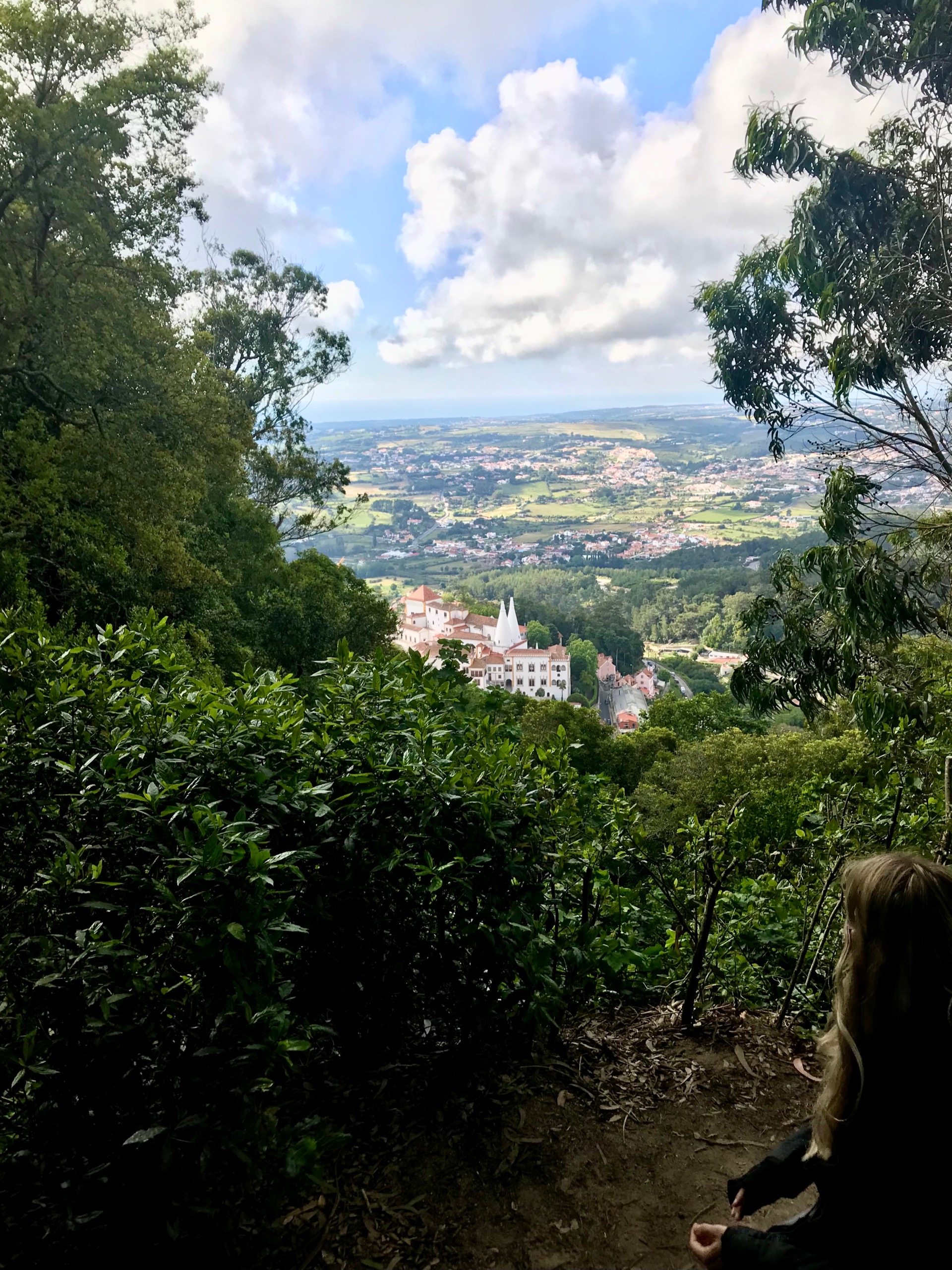 Now, several hours into our tour of Palace and Park, we decide to make our way around the hillside and to Sintra's city center for dinner. Well-worn trails lead around the edge of the grounds, providing scenic views of the surrounding towns. In some spots, the climb can be a bit arduous as the elevation rises and falls swiftly.