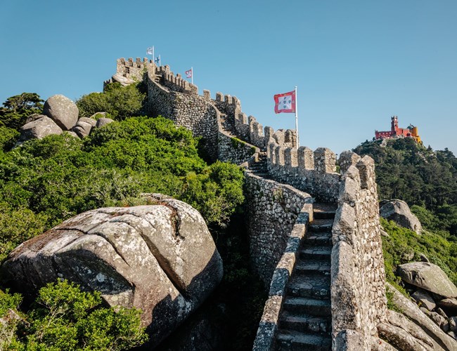 Castelo dos Mouros is a destination that deserves its own due. 1500 feet of walled fortress and inner grounds offer visitors hours of exploration. From the top, stellar views of the surrounding country, including that of Pena Palace, nearby. And from inside, a unique perspective into 8th-century Moorish architecture and history.